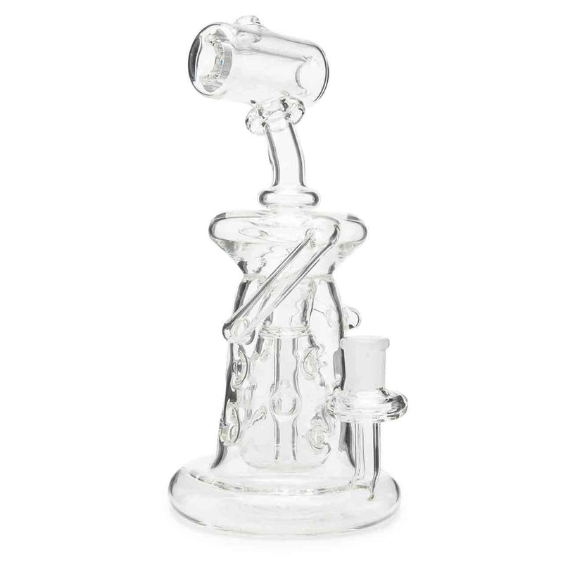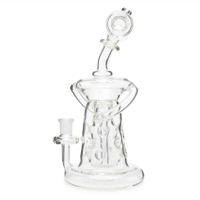 The 710 Fab Egg Cycler is one dab rig you don't miss out on owning. Crafted from premium scientific glass, this fab egg recycler has a two chamber recycling system with a swiss perc that help keep the water moving for the maximum cooling effect. Watching the smoke travel through every of the chamber of this clear glass piece is a sight to see. The barrel designed mouthpiece add to the uniqueness of this piece.