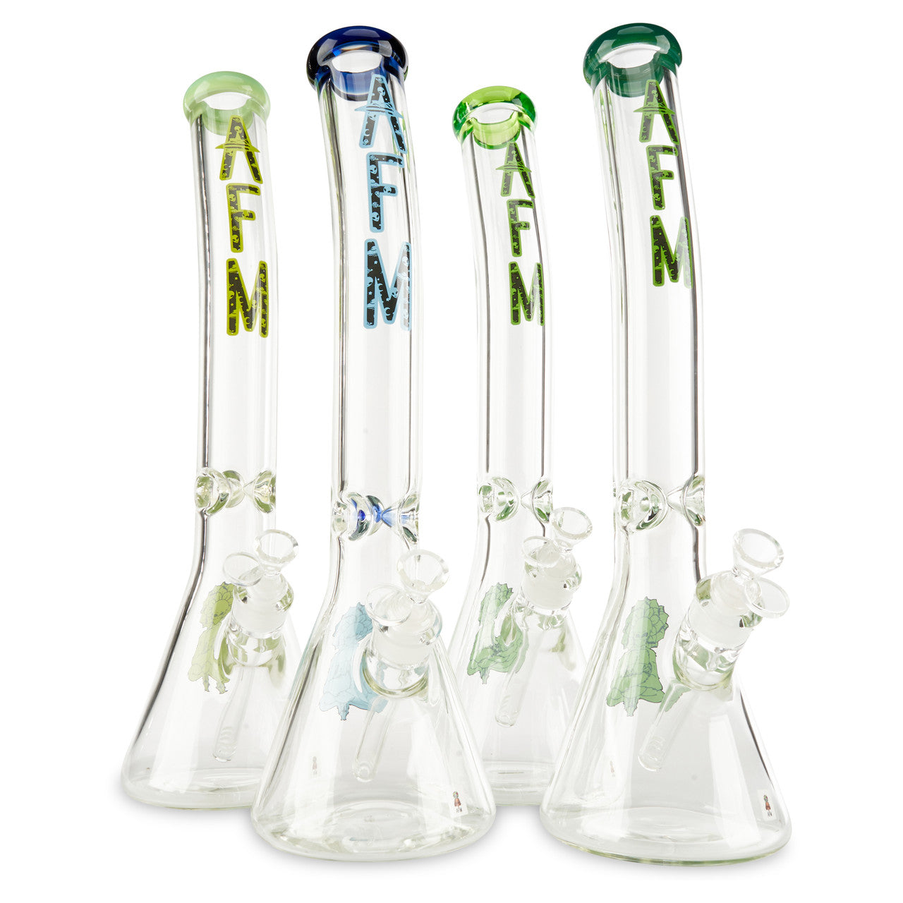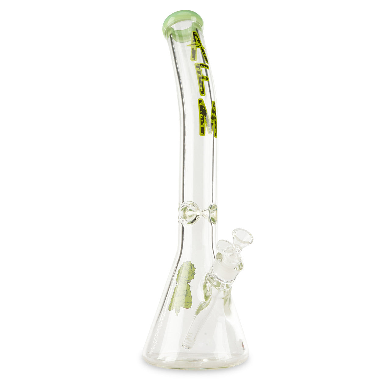 Alien Flower Monkey Glass is always producing unique and functional water pipe designs. The Bent Neck Beaker by AFM Glass is truly outstanding. This beaker is high quality and durable with the 9mm thick American glass. This beaker features a bent neck that is not often seen in tall beaker pipes. The bent neck feature makes it easier to take bigger hits from the pipe. This beaker stands at approx. 18" tall and includes a 14mm martini slide. Available in multiple color options.