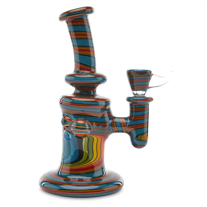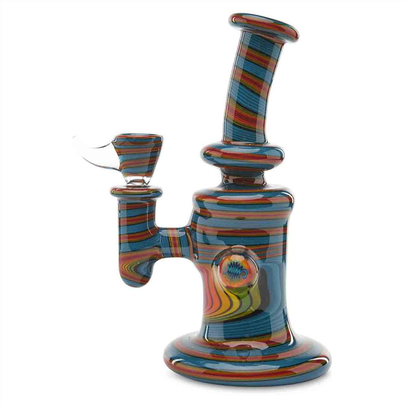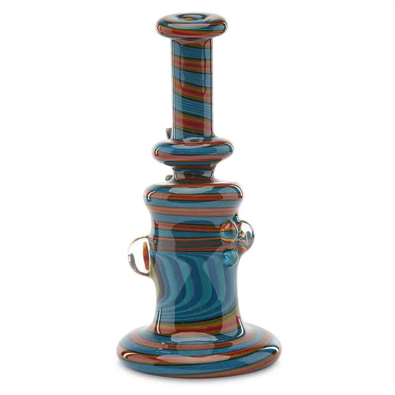 When it comes to heady glasswork, Andy G knocks it way out of the park. A prime example of his exemplary is this beautiful Banger Hanger Mini Tube with fully worked multi-colored lines. A whole new level of heady glass design, the tube may be mini, but it sure is mightly is taste and performance. The slightly curved neck and flaired mouthpiece make driving this rig a dream. The flared base makes it sturdy on virtually any surface. A hallmark of any Andy G piece, is the precisely worked lines that compliment the flow. So whether you're a novice, or an avid heady glass collector, you won't want to miss out on this brilliant and exciring Line Work Banger Hanger Mini Tube by Andy G!