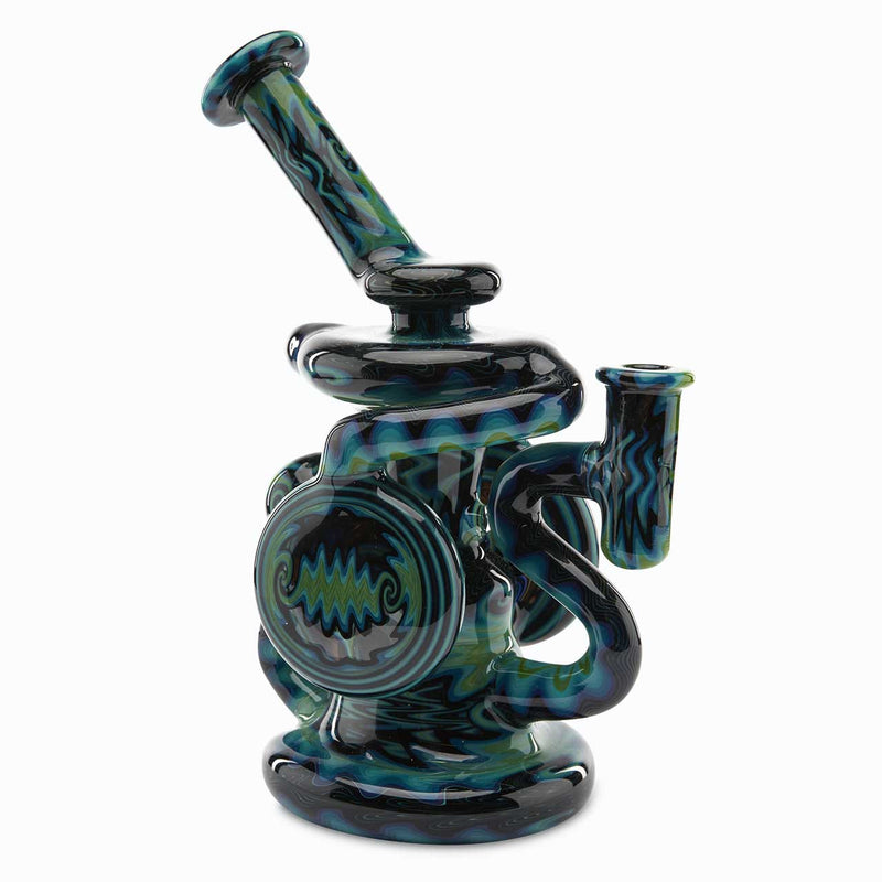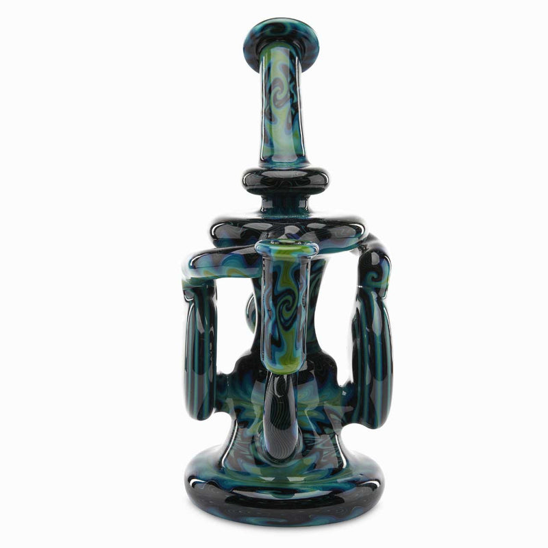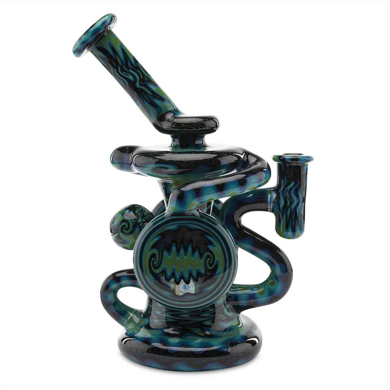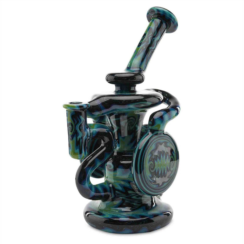 When it comes to premium heady glasswork, Andy G is the leader of the pack. An all-around gem of a dab rig, this Andy G Double Klein Recycler is one piece you will want for your collection. Whether your a novice, or an avid heady glass collector, this piece will end up being the jewel in the crown. Aside from the spectacular exterior, the Double Klein Recycler is also highly functional and will definately sing the sweet sounds of bliss. The double disc recycler body and disc percolator make for smooth and tasty rips every time. The recycling Klein design helps prevent water cycling through, thus preventing splashback. The two chamber water filter blasts your vapor to a whole new level of coolness. The incredible design and disc diffuser will blast your mind into a different dimension. As is standard with all Andy G Heady Glass, the Double Klein Recycler features deep blue and green wig wag work that pushes the limit of design.