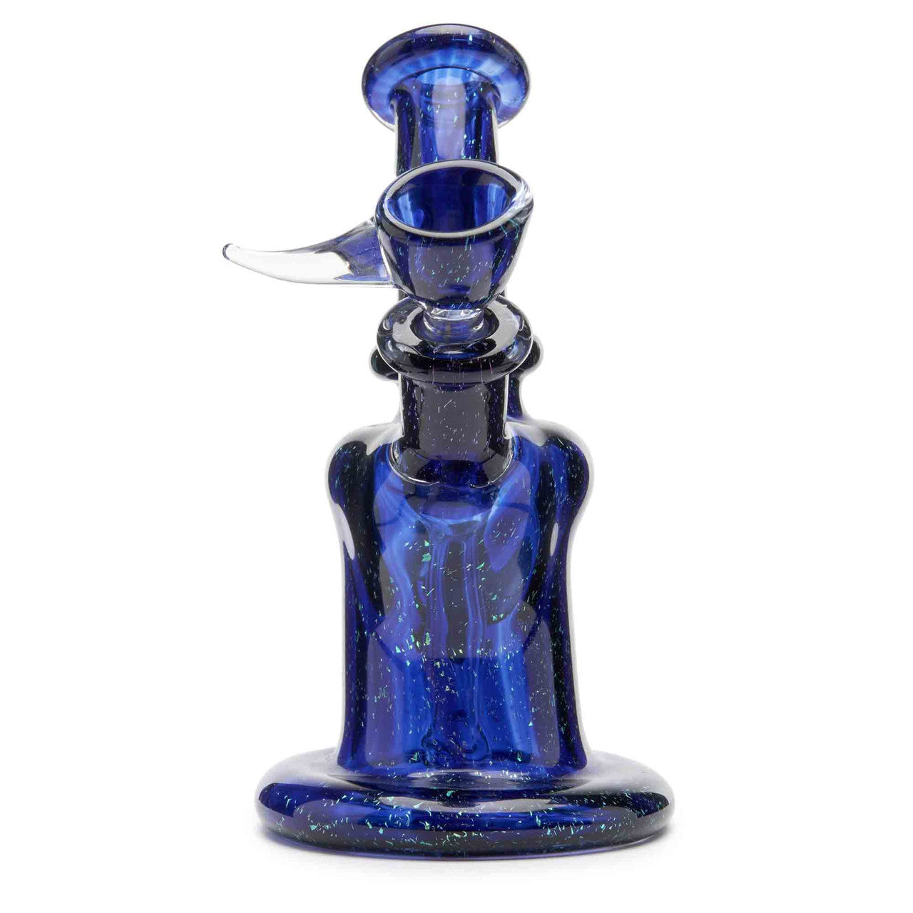 Andy G is an incredible American artist with a wide range of techniques mastered. His dichro work and wig wag work is out of this world, and his amazing use of color will dazzle the eyes! This Andy G Dichro Mini Tube is a fantastic little rig! The body and joint have been made entirely from cobalt-backed dichro tubing. There is a dichro encasement cab on the backside, and there is even a matching 10mm dichro slide. This beautiful mini tube stands at only 5.5" tall making it fantastic for travel and every day use.