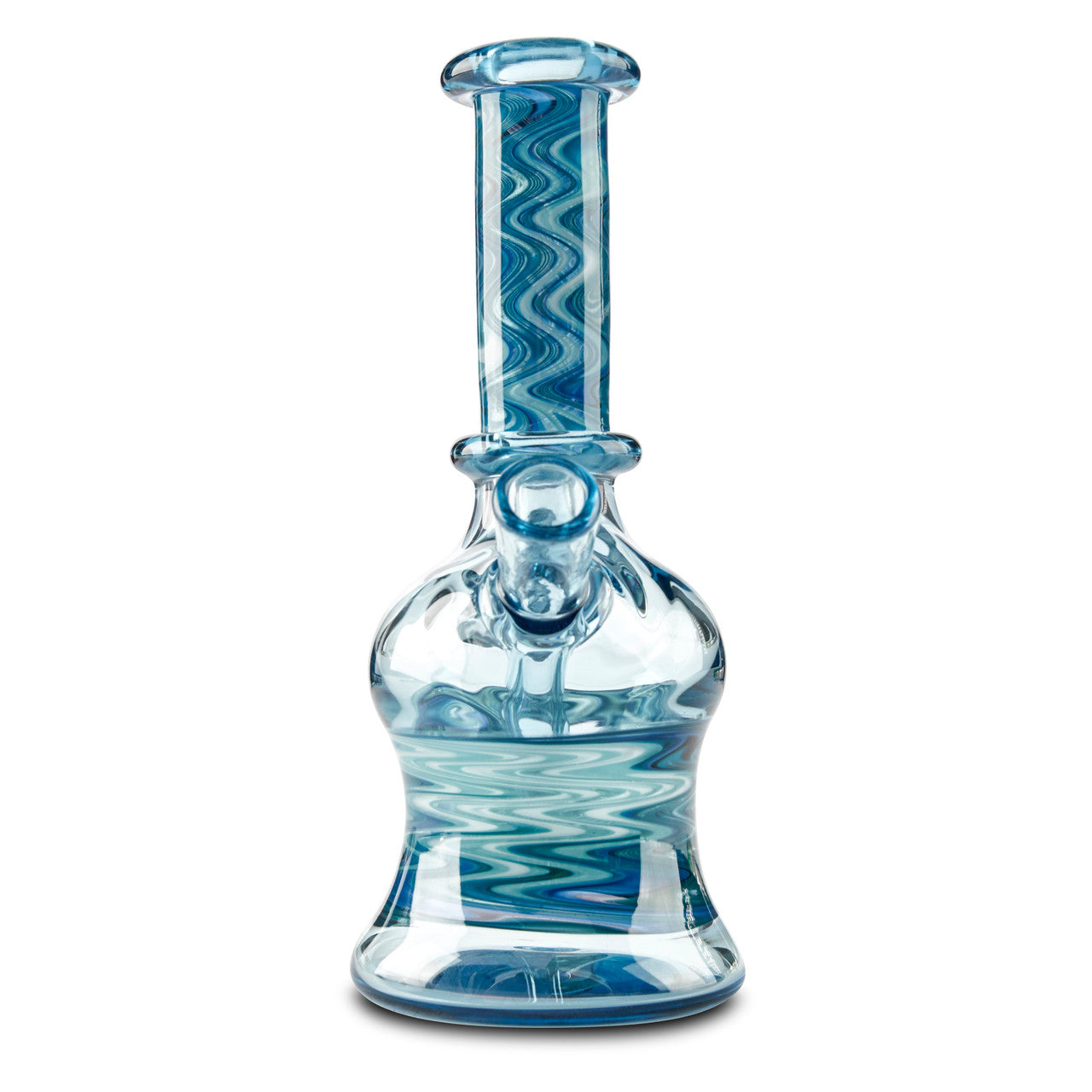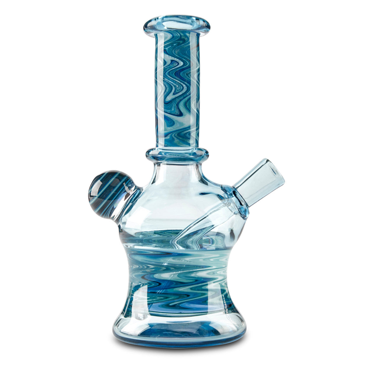 Blueberry Glass is an Oregon based heady glass artist popular for his smaller concentrate glass pipes. This Blueberry Glass mini tube stands at approx. 6" tall and is made with a 10mm female joint. This mini tube is designed with raindrop color glass featuring blue linework on the stem and body of the rig. On the back of the pipe, there is a beautiful marble with matching linework. This piece is small and very portable making it great for group sessions or travel. Get the Blueberry Mini Tube today at Cloud 9 Smoke Co.!