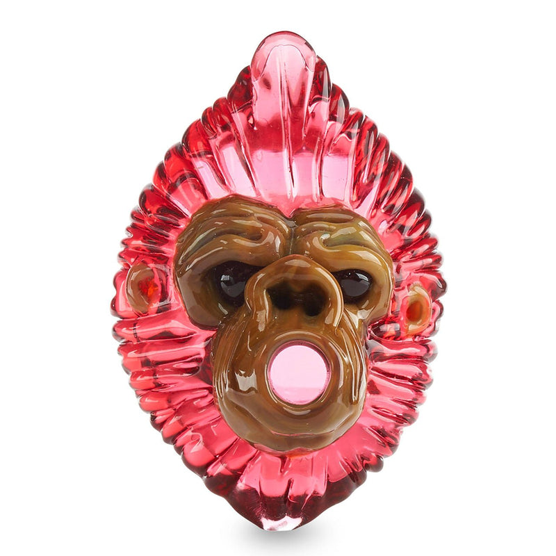 Make more than a fashion statement with this handcrafted Wook Pendant #92 by John Simpson. This magnificent piece is made from borosilicate glass that features a rich molten aura gold ruby glass. This multi-dimensional piece has precisely cut details that add stunning dimension and texture. A closer look at this Wookie Wook reveals deep and mysterious ruby eyes. The BluSun Glass Wook Pendant is signed and numbered Inverso by the artist, which adds to its authenticity. John Simpson is a renowned glass artisan famous for his "Wooks," inspired by man's spiritual and physical evolution. The eyelet in the back is designed for the pendant chord. This Wook Pendant is bound to be your most treasured piece!
