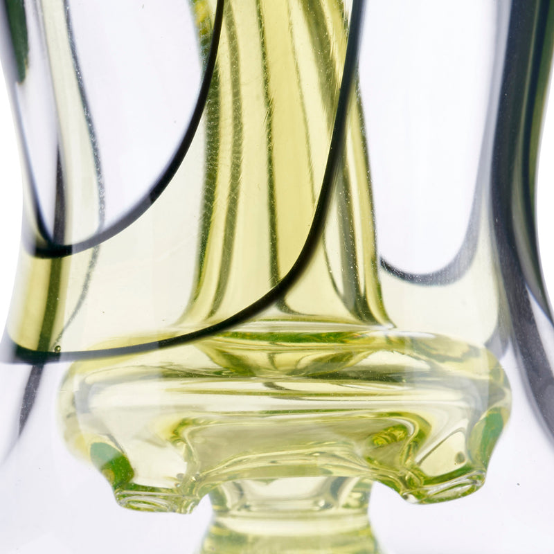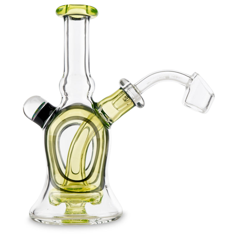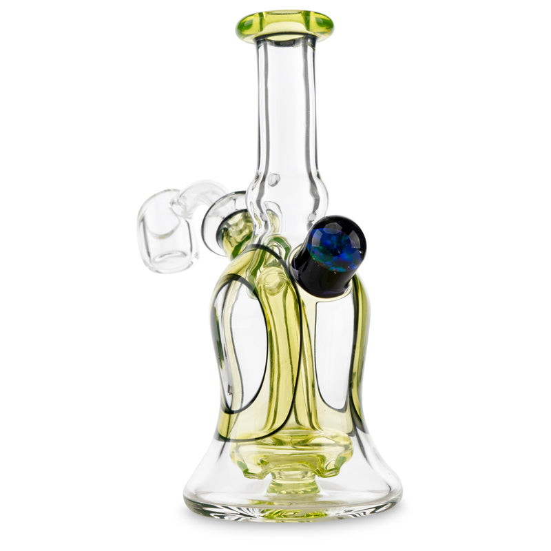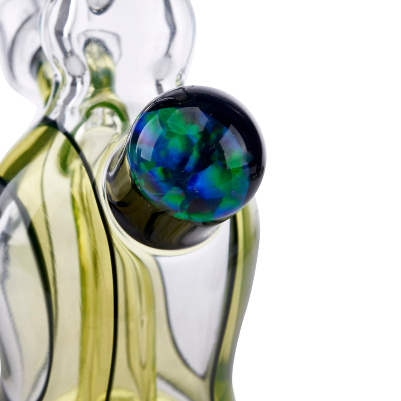 Bowman Glass is a legendary glass artist known for his window tubes. Creating window tubes takes a massive amount of skill and patience that Bowman Glass has mastered. This beautiful Bowman mini tube is designed with clear and illuminati glass. The illuminati glass allows the pipe to change color in different lights. The back of the mini tube features a gorgeous blue opal design. This mini tube stands at approx. 5.5" tall and features a 10mm female 45 degree joint.