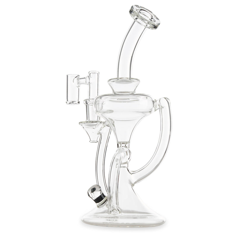 Casa Glass is a glass artist out of Texas and has been producing beautiful glass pieces since 2012. Casa got their start from humble beginnings blowing out of the back of a smoke shop that he and his brother started. Their passion and hard work shows and has paid off as they have made their mark on this industry. This clear Casa Recycler features amazing function and clean welds on the piece. This Casa Recycler has a beautiful black opal encasement on the base. The recycler stands at 8.75" tall and has a 14mm female joint. Get it today at Cloud 9 Smoke Co.!