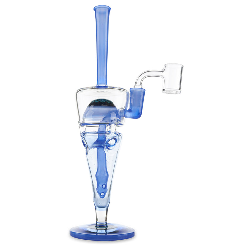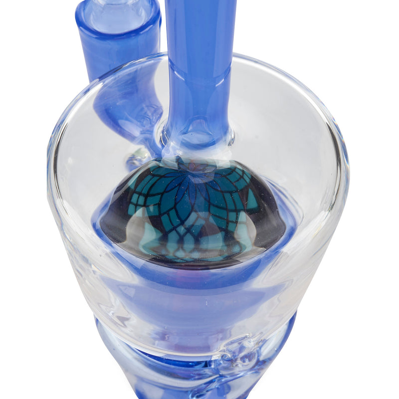 Renown glass artists, Chip Glass and BoHowe Glass have come together again to produce some of the best glass in the industry. Chip Glass is based out of North Carolina and is inspired by Mothership-like fab egg designs. His pieces are always solid and sturdy and feature clean welds and amazing function. Bo Howe glass is instantly recognizable among collectors with his own unique style that he has developed in his glass art. This Venetian Egg dab rig displays a combination of the quality craftsmanship and individual techniques both of these amazing glass artists provide. This rig features a beautiful blue cheese design and has a 14mm female joint. Get it today at Cloud 9 Smoke Co.!