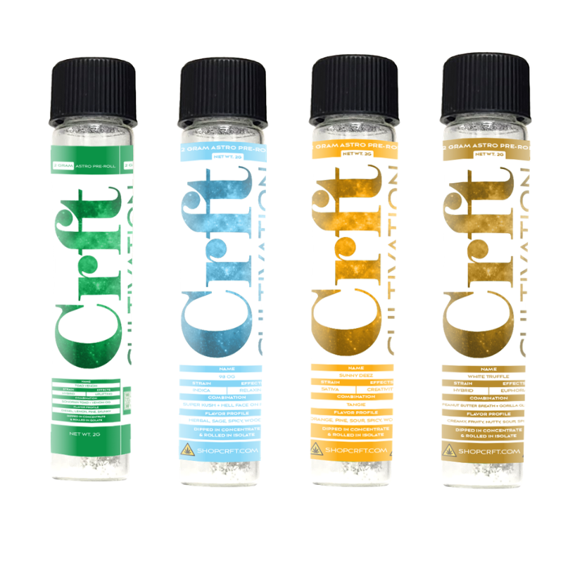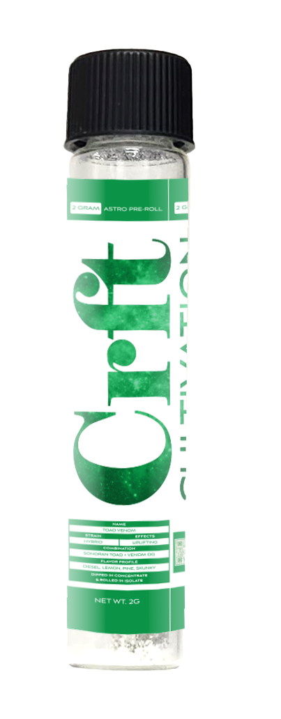 Next-level potency. Slow, even burn. Heavy-hitting experience. The CRFT Astro Rocks Pre-Roll is crafted for those who want something stronger than the standard roll — delivering elevated effects with a smooth, flavorful draw.