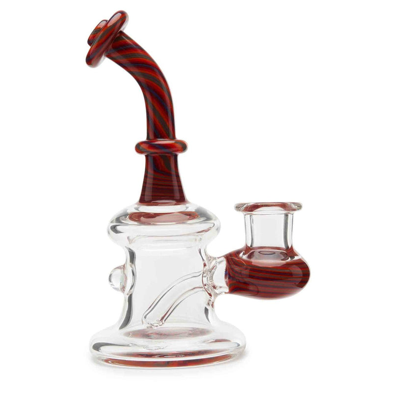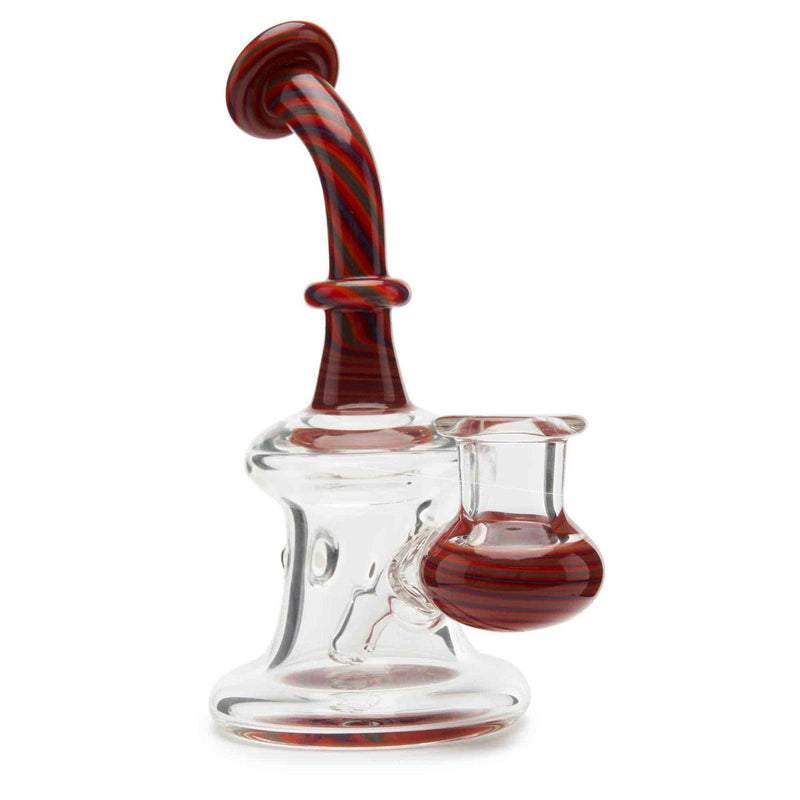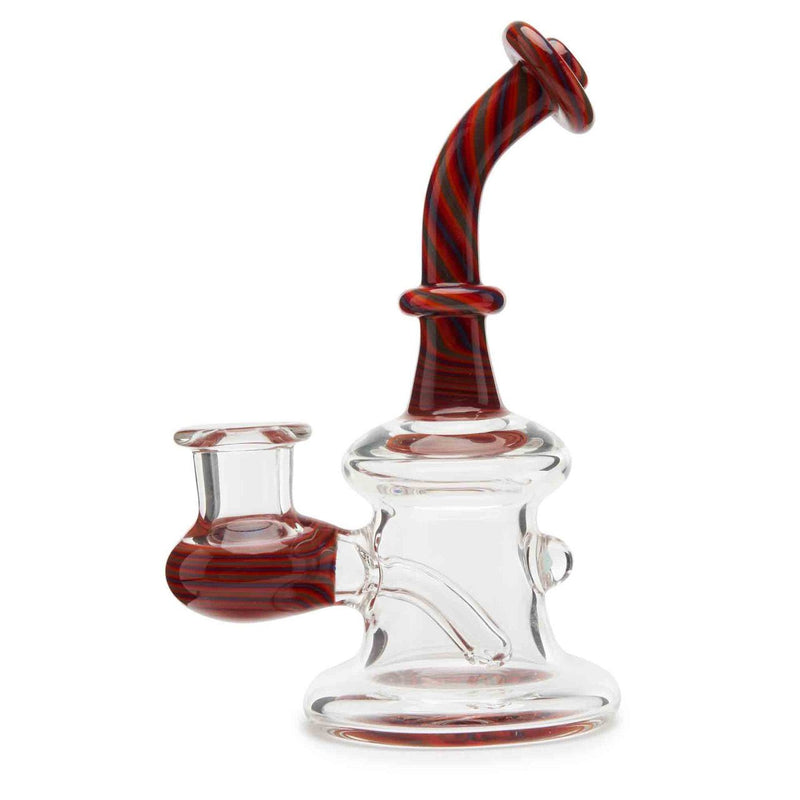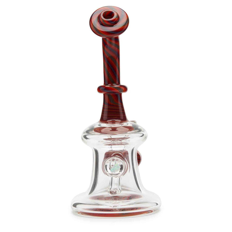 Cristo Glass continues to provide amazing glass art with beautiful wig wag designs. This Cristo Banger Hanger has amazing detail with the red wig wag linework featured on the neck, base, and joint of the pipe. This fully worked piece also features an opal encasement on the back of the banger hanger. The banger hanger is made with a 14mm female joint at a 90 degree angle. Get this beautiful piece today at Cloud 9 Smoke Co.!