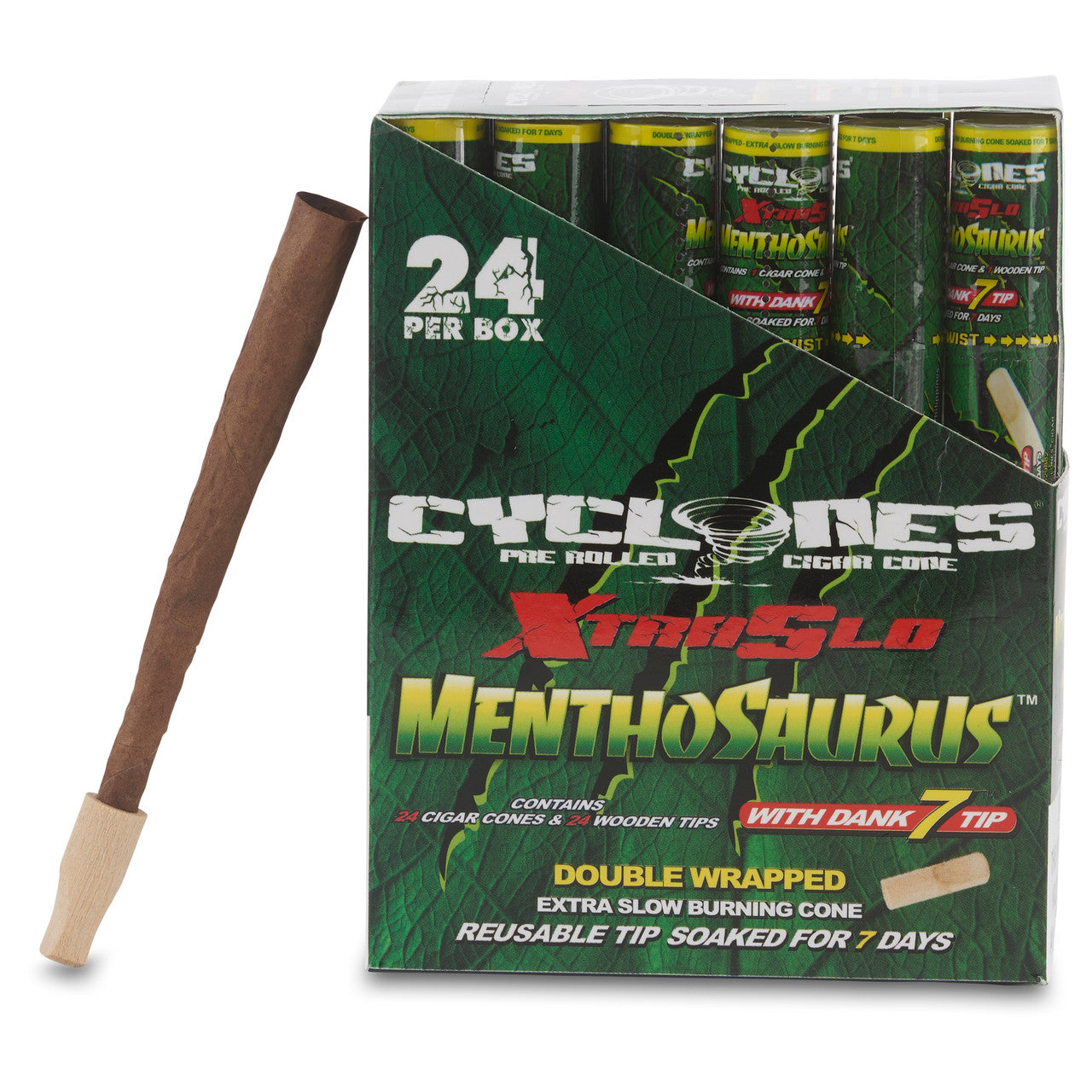 Get ready for the next generation of Cyclone cones with the Cyclone Xtra-Slow Burn Blunt Cone! You will not want to miss out on these incredibly made cones! Made with a natural bamboo tip that has been soaked 7 days in flavor, these cones result in unmatched deliciousness! Each cone is hand rolled with 2 wraps per cone for an extra smooth, extra slow burn. The double wrapper combined with the dank 7 tip makes these the most delicious and premium smoke you'll ever experience.