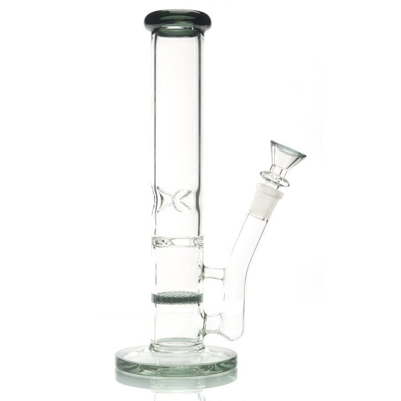 If you're looking to indulge in a straight tube water pipe loaded with amazing functionalty, you've come to the right place! The DTHC Straight Disc Turbine Water Pipe is a classic straight tube water pipe crafted from borosilicate glass. This 12" straight tube water pipe flaunts sleek tubing and amazing percolation. The DTHC Straight Disc Turbine Water Pipe features a honeycomb percolator at the base of the water pipe with an additional turbine percolator loaded in the upper chamber of base of this straight tube! If you've ever smoked out of a water pipe with a turbine perc, you know how sick it is to watch your smoke and water spin just like a tornado. The DTHC Straight Disc Turbine Water Pipe does just that and more! If you're in need of cool, refreshing hits, not a problem. This water pipe is loaded with an ice pinch for all hits to be easy, breezy, and cool upon the final inhale! You can find the DTHC Straight Disc Turbine Water Pipe outfitted with colored accents on its base, honeycomb percolator, and bubbled mouthpiece in your choice of two stellar colors. It's time to twist your sesh into motion!