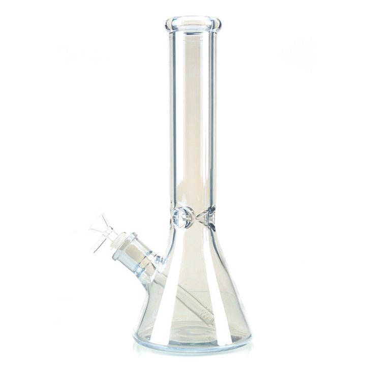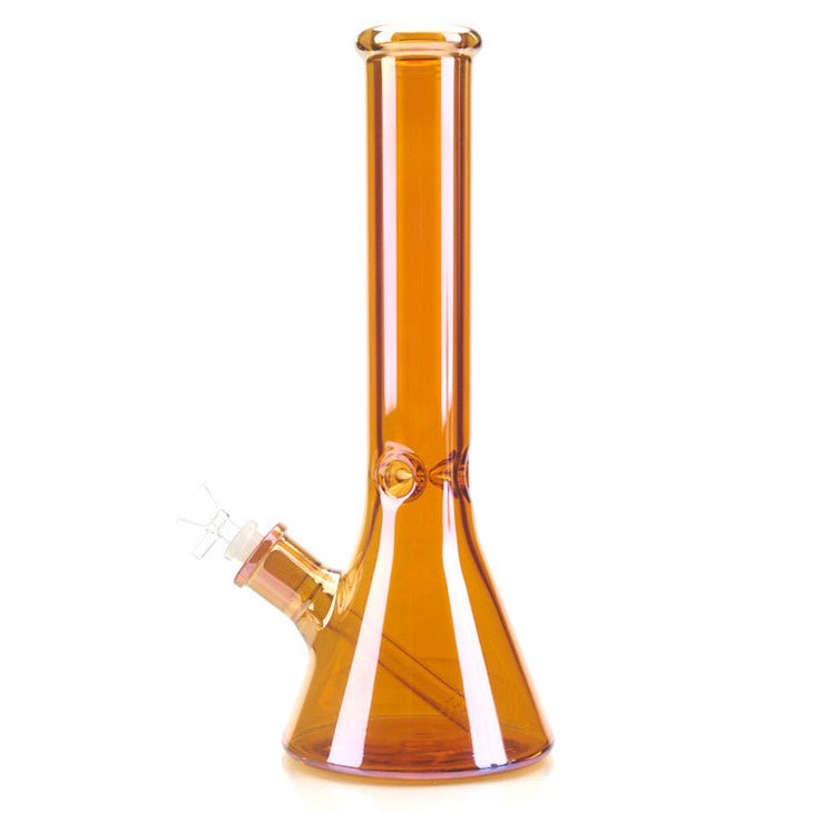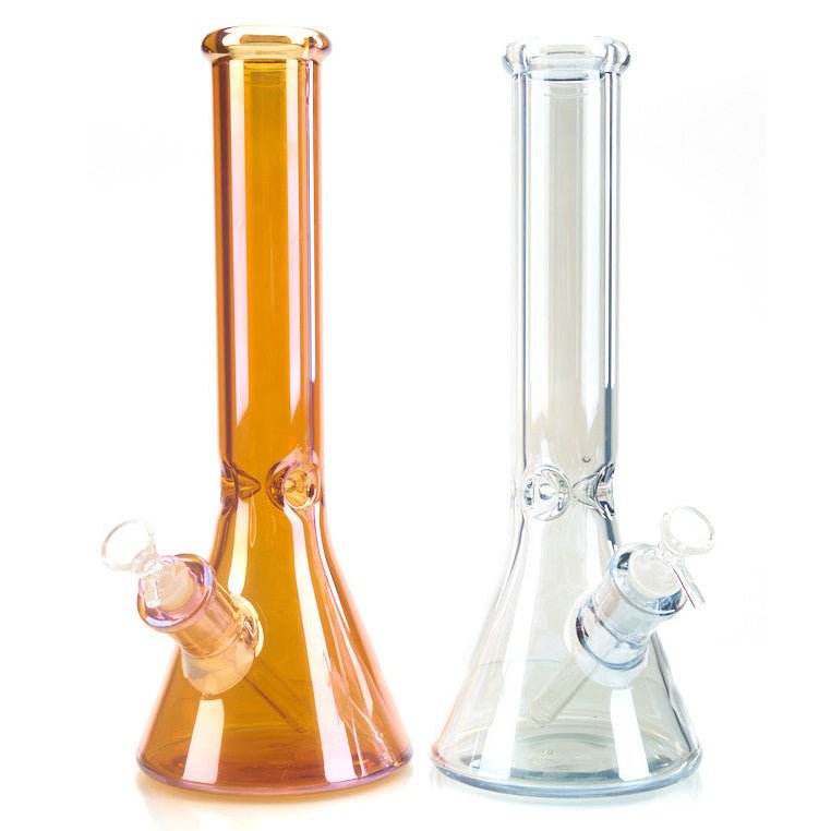 All bud enthusiasts know that when it comes to glass, it’s always a hunt for the perfect piece. With the Electric Beaker, your hunt will soon be over! The Electric Beaker is a unique beaker base water pipe crafted from borosilicate glass. The body of the Electric Beaker stands out from ordinary glass pipes with its fumed body, creating the appearance of iridescent colors throughout the piece! A quick fun fact: whenever glass is fumed, it means that the artist has carefully selected metals, such as gold or silver, to fume along the piece to give it unique design and iridescent colors. Not only is the Electric Beaker a sight for sore eyes, but it also has unmatched functionality that will take your smoking experience to the moon! This beaker water pipe is equipped with a removable diffused downstem that works with its wide base to give your smoke all the filtration and water contact to ensure every hit or rip is incredibly smooth. An additional feature of this beaker base water pipe is its ice pinch located right at the bottom of the neck! You can find the Electric Beaker available in your choice of 2 fumed style options, giving you the reigns to deck out and personalize your smoking experience to the 9’s!