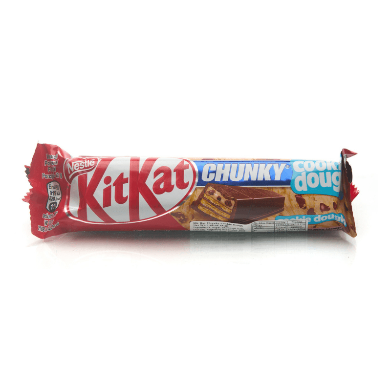 - Chunky Cookie Dough (Sourced from Switzerland) - Crisp wafer finger with a creamed cookie dough topping covered with milk chocolate.