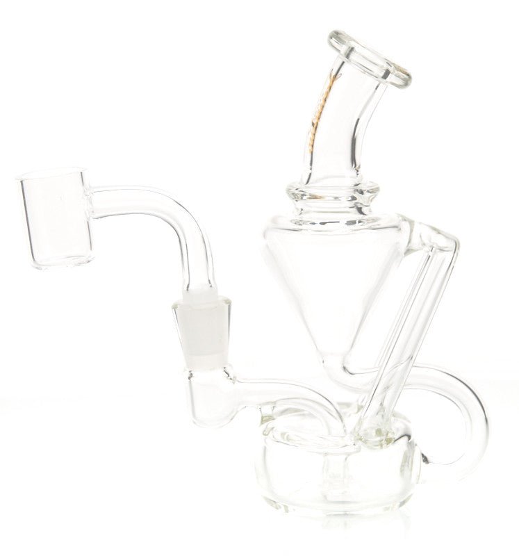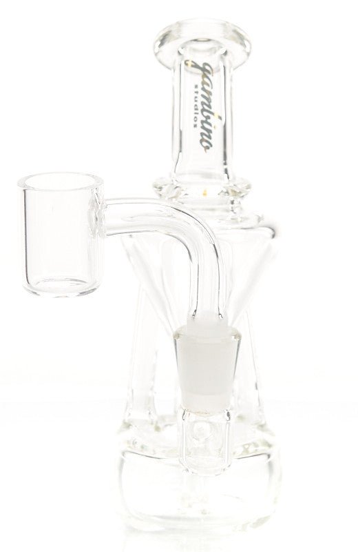 Tiny but mighty, the Gambino Double Uptake Recycler is here to revolutionize your dabbing experience! The Double Uptake Rig is a mini recycler rig strapped up with perfect armor due to its borosilicate glass architecture. This mini rig is designed with a hollow foot base that works with its dual arm recycling features to uptake your concentrate vapor for seamless diffusion! The Double Uptake rig is equipped with a 10mm fixed triple-diffy percolator to work alongside its recycling capabilities to ensure smooth hits that your throat will surely thank you for later. The Double Uptake’s bent neck features a flared mouthpiece for optimal suction and includes the additional bonus of the funneled recycling feature to serve as a splash guard. You will definitely receive what your lungs put into with this dab rig! The Gambino Double Uptake is a mini recycler that means business, and will deliver dabs in transformational ways that will surely elevate your dabbing experience. You won’t know what hit ya with the Gambino Double Uptake Recycler!