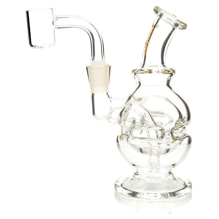 The Gambino Faberge Mini is here to bring classical dab styles into the modern era. This faberge egg dab rig is crafted from premium borosilicate glass, making it a tough competitor to your glass collection! The Gambino Faberge Mini’s faberge and triple diffused perc combo takes the functionality of this rig to the next level, and will deliver hits that are smoother than a baby’s bottom. The classic style of the Faberge Mini is an effective bubble stacker for your cleanest concentrates, and has all intentions of making all dabs fresh and potent to the cranium. Its bent neck and splash guard combo allows you to dab with convenience and maximum efficiency. With its wide base, the Gambino Faberge Mini is a piece that looks good in any collection!
