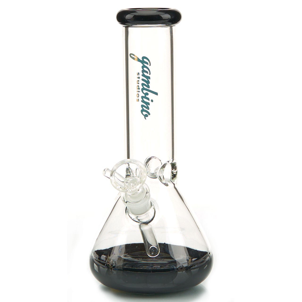 If you like having stability, extra water capacity, and a relaxing toke, this Gambino Studios The 45 Beaker Water Pipe is the perfect piece for you. The broad beaker base offers more water filtration than a traditional straight tube and extra stability. With a 3-pinch ice catch, this water pipe can helps chill every draw while enhancing the taste of your favorite dry herbs and flower. The diffused downstem and the vast chamber ensure any smoke that passed through will be optimally filtered. The beaker water pipe's unique feature is the colored bottom that matches the mouthpiece for stylish flair in your collection. All you have to do is pop in your favorite herbs, and you are ready to go. Whether you are just starting or an avid smoke connoisseur, the Gambino Studios 45 Beaker Water Pipe is bound to be the star in any collection.