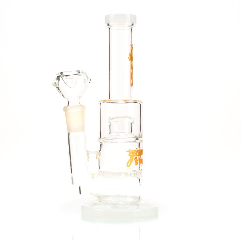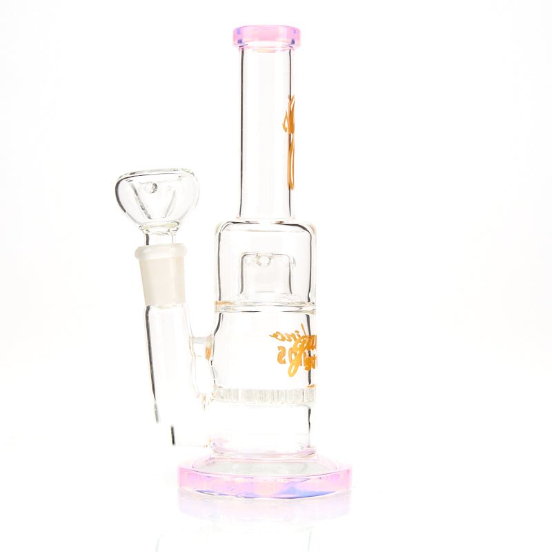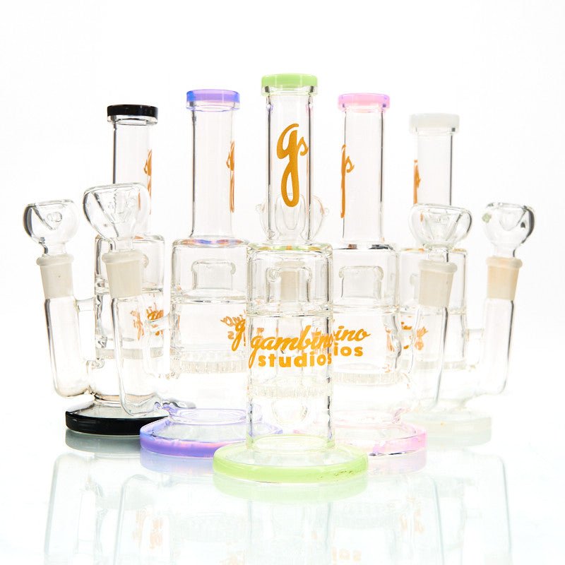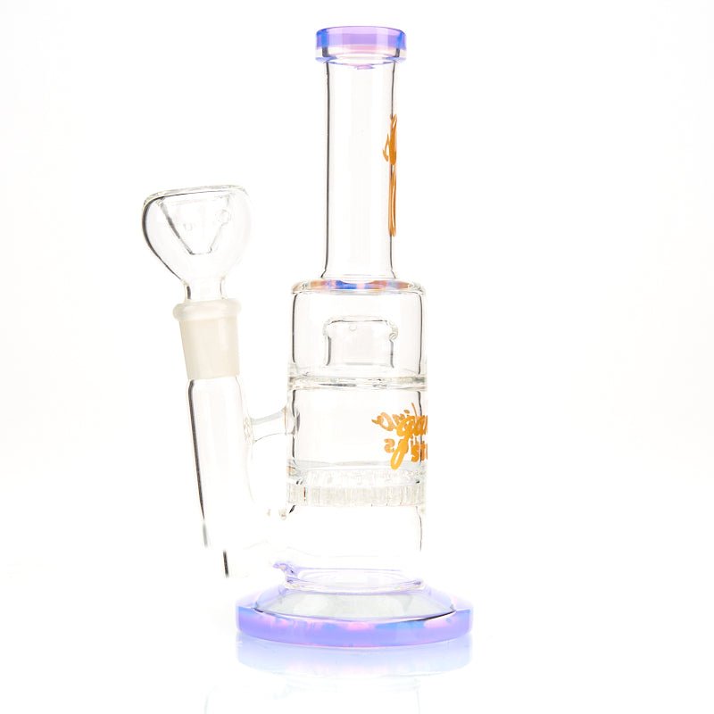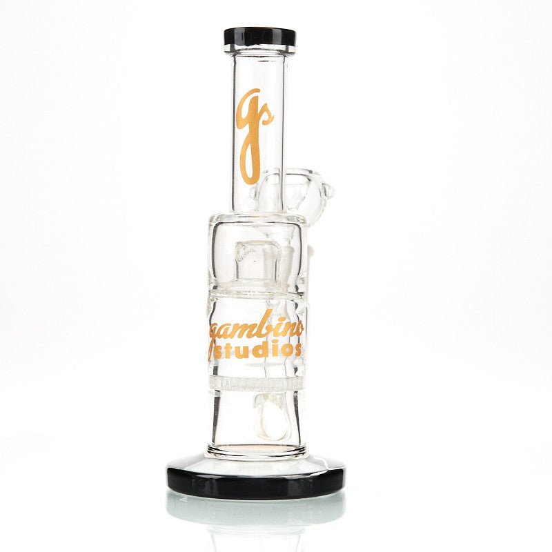 The Gambino Style #16 Water Pipe is a mini beaker base water pipe that can be used for your favorite dry herb or concentrate. This mini beaker base and architecture work in alliance to give you an insanely durable glass piece!