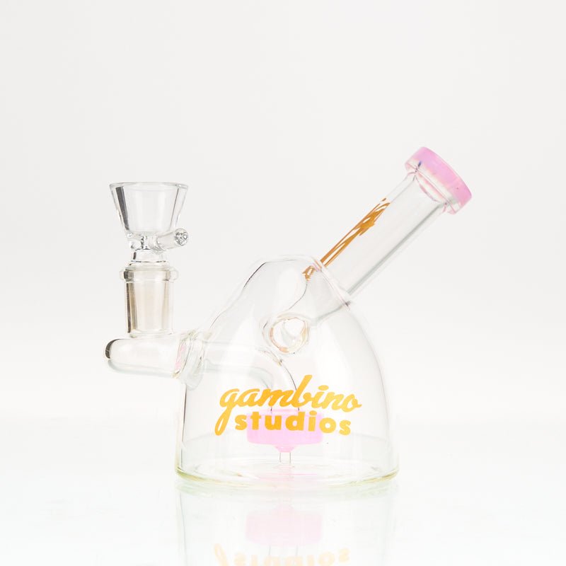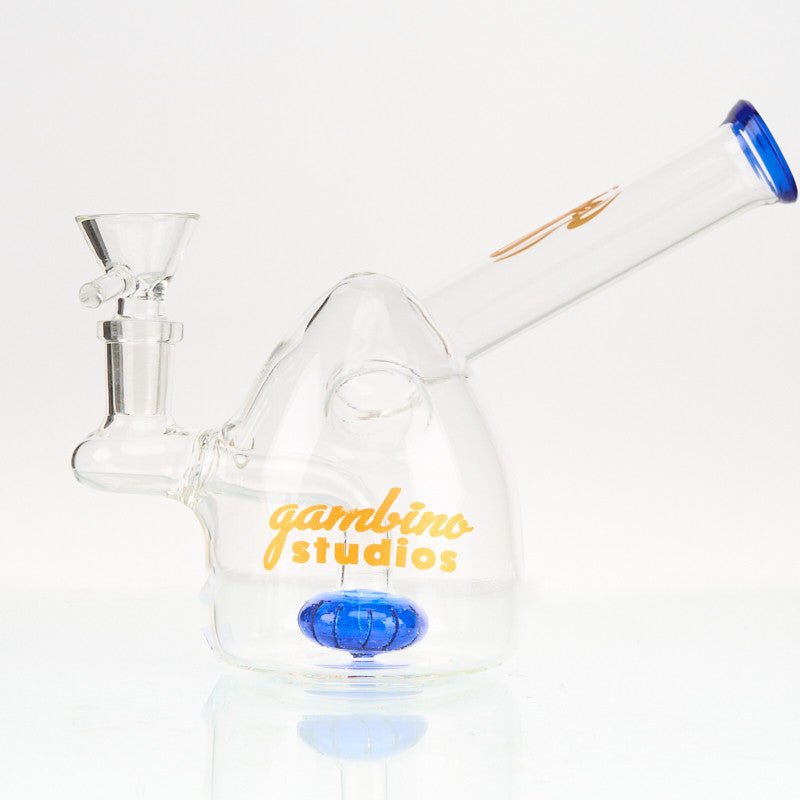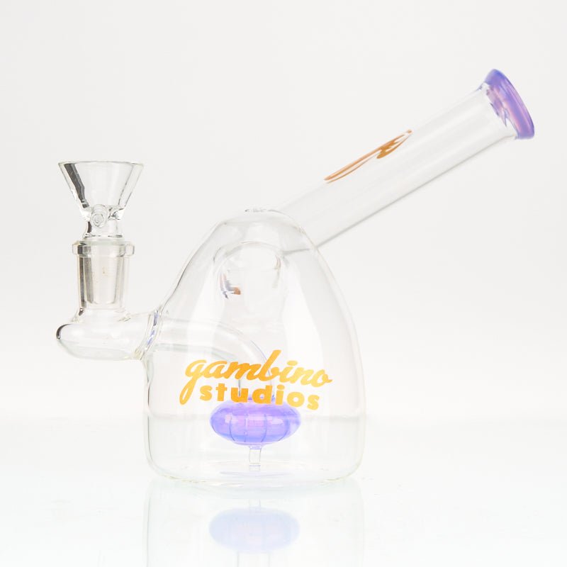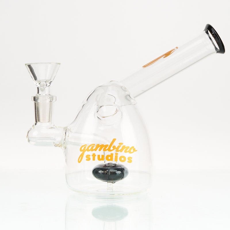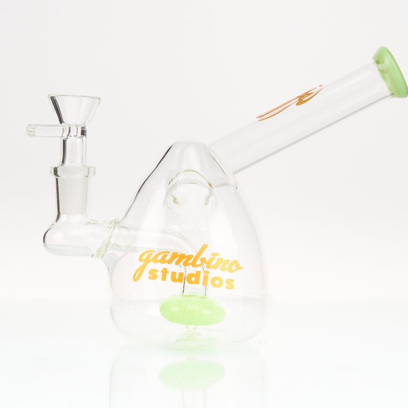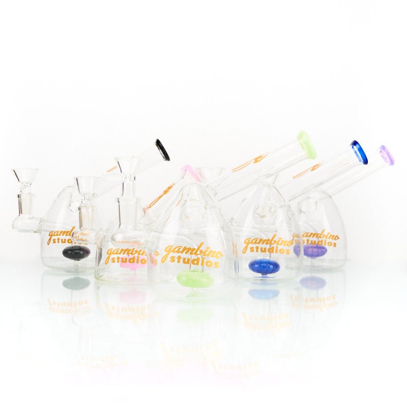 The Gambino Style #21 Water Pipe is outfitted with colored accents on its base, perc cap, bent neck, and mouthpiece. It will also be a personalized asset to your glass collection.