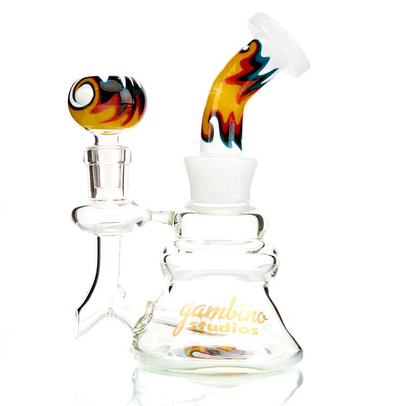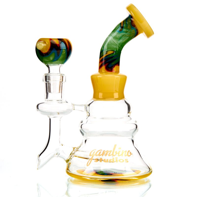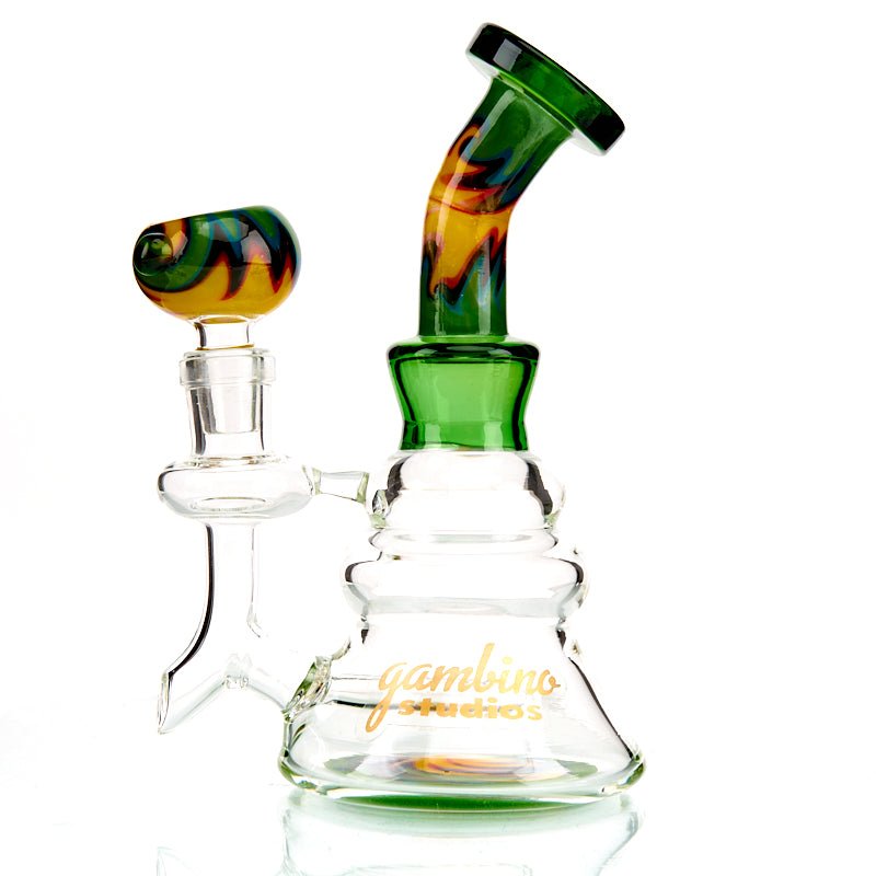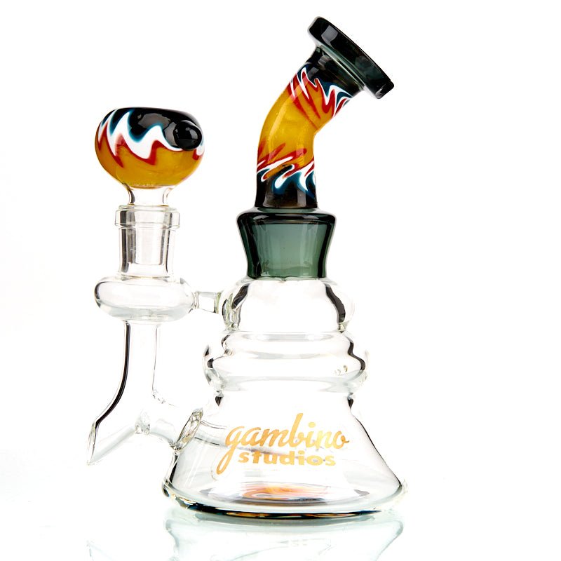 Gambino Style #22 Water Pipe features lustrous tubing made from borosilicate glass, making it a sturdy and durable pipe to have around. The bent neck of this water pipe is paired with a rimmed mouthpiece to provide you effortless, comfortable seshes wherever you wish.
