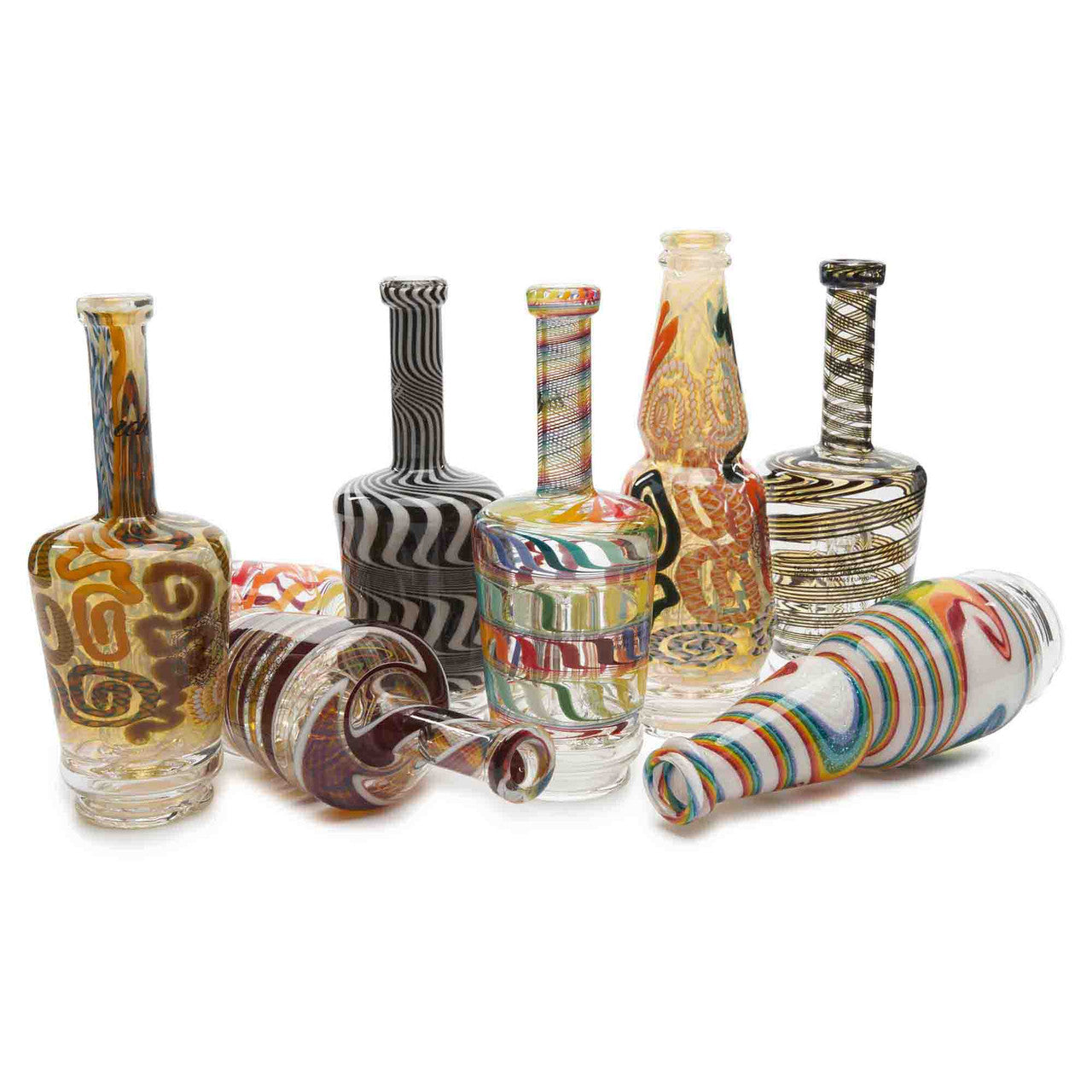 The Henny Bottle attachment is made for the Puffco Peak Concentrate vaporizer and is designed to bring you smoother, greater tasting hits to you Puffco expereince. This attachement features a reinforced 3 hole dome perc to prived you with just the right amount of smoke diffusion. This piece was designed specifically to be used with the Puffco Peak Vaporizer so it fits perfectly! Check out the beautiful worked glass designs