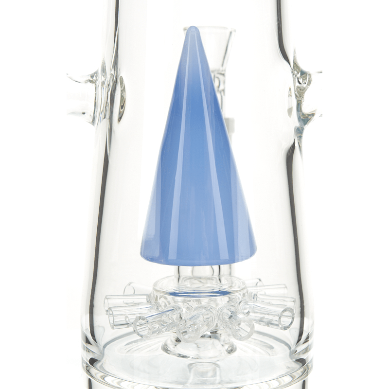 If exuberance were a water pipe this would be it! The international Trap Star Capone is an enormous, multi-percolator water pipe with many features and extras that other water pipes don’t have. The interior functional piece is a cone percolator with multiple-hole diffusers that allow for rapid cooling and stellar diffusion so every toke is a smooth toke. The downstem utilizes a gnarly in-line percolator in order to even further diffuse your smoke before it enters your lungs. This behemoth of a water pipe makes its presence known in both style and size, as she features huge recyclers on the outsides which balance the staggering weight of this piece. Overall, if we take a look at this piece stripped down it’s a straight tube water pipe, but with all of the extravagant features it functions and appears incredibly complex, which means this piece is probably best for our veteran smokers.