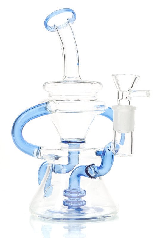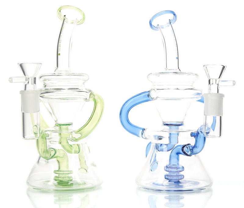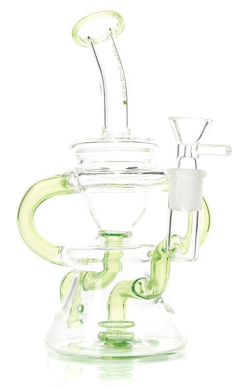 Are you ready to be wowed by the aesthetically beautiful science of wind and water? Get ready for the International Trap Star Big Meech Recycler! This carefully designed water pipe or dab rig (depending on your desired attachment) is a must-have edition to any casual or daily smoker’s collection. Featuring a fixed downstem, the International Trap Star Big Meech Recycler also utilizes a dual diffuser system that juxtaposes two uptake arms and eventually feeds back into the drain which then leads back to your water basin at the core of the piece. This water pipe/dab rig functions primarily as a concentrate piece for dabs, but once switched the adapter can host a slew of different bowls for dry herb, too! No matter what your experience level is with concentrates, this is sure to be a hit for newbies and professionals alike. With excellent diffusing and recycling features professionals will love its sleek, compact design and newbies will gravitate towards the simple nature of its construction.