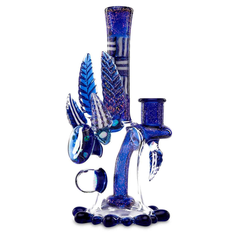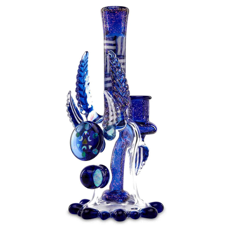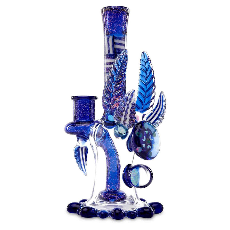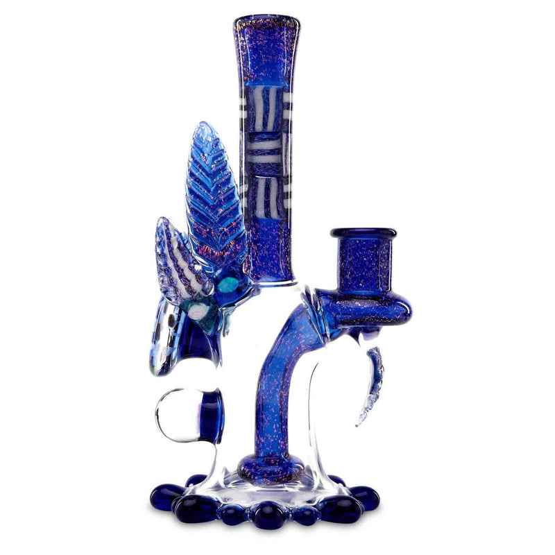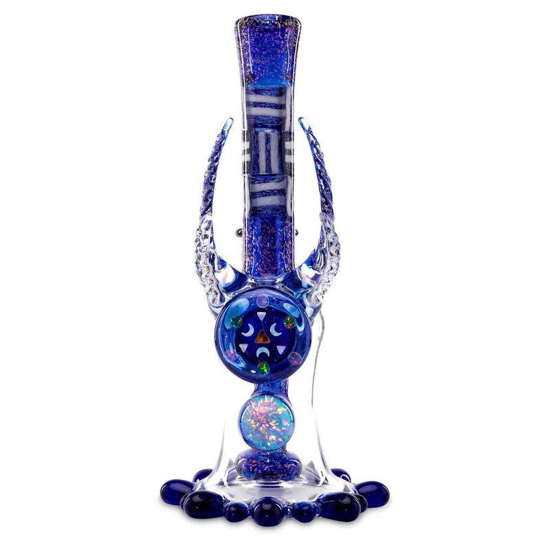 Jon E. Walker is an experienced glass-blower who's been producing borosilicate glass pipes for over ten years. This mini tube is designed with a beautiful deep blue color combination and features an opal inlay inside of the base of the pipe. Inside of the base you'll find a disk perc as well giving the piece a very smooth function. This piece has a 10mm joint.