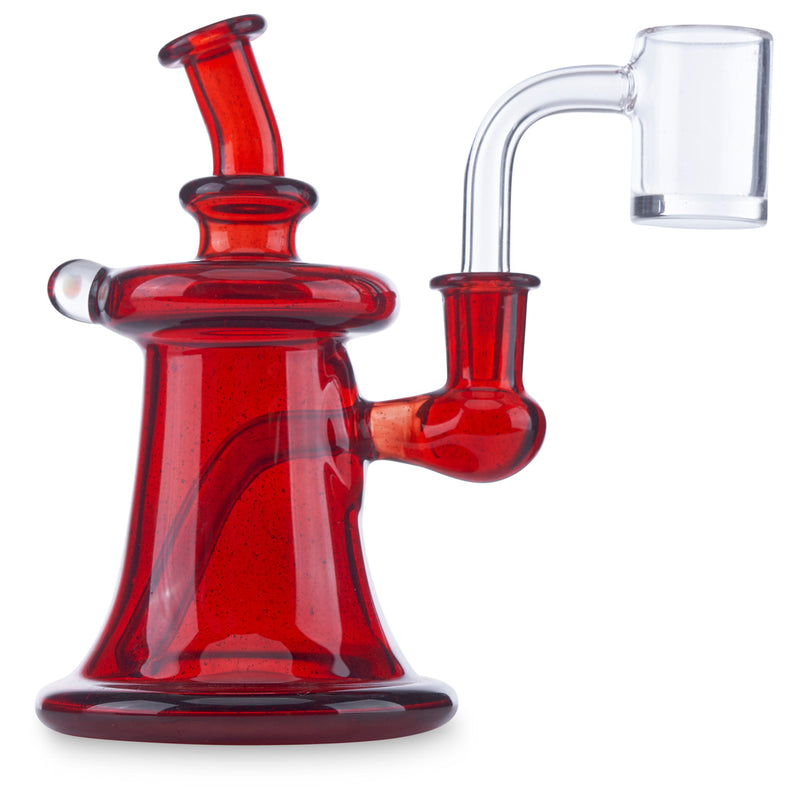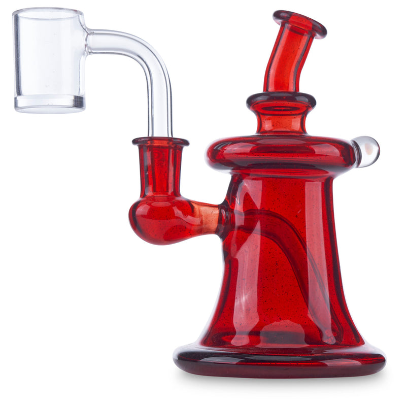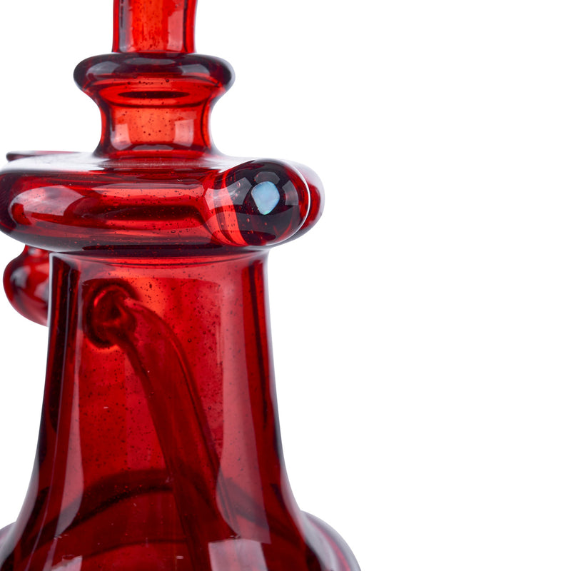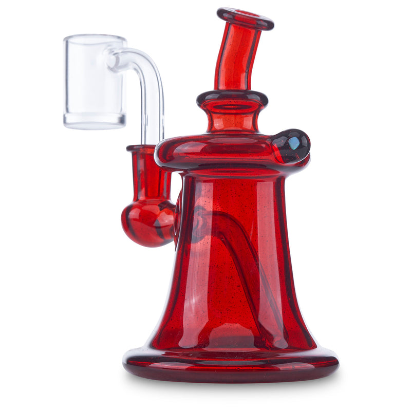 Get a beautiful hand-crafted and affordable piece with the Red Elvis Kentak Banger Hanger. Made by Kenta Kito Glass, this small dab rig is designed with all over red elvis glass and has an opal encasement on the back of the piece. The banger hanger is approx. 6" tall with a 10mm female joint. Get the beautiful red elvis banger hanger today at Cloud 9 Smoke Co.