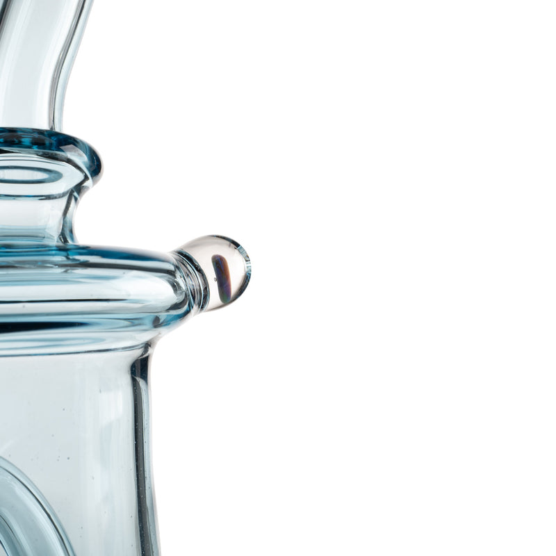 Get the perfect concentrate rig with the Kentak Glass Sky Blue Banger Hanger. This beautiful glass piece is 9.5" tall with a 10mm female joint. Featured on the backside of the rig is a gorgeous opal marble encasement to tie the entire piece together. Get the Kentak Glass Banger Hanger today!