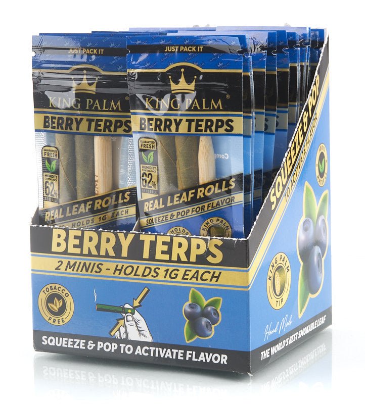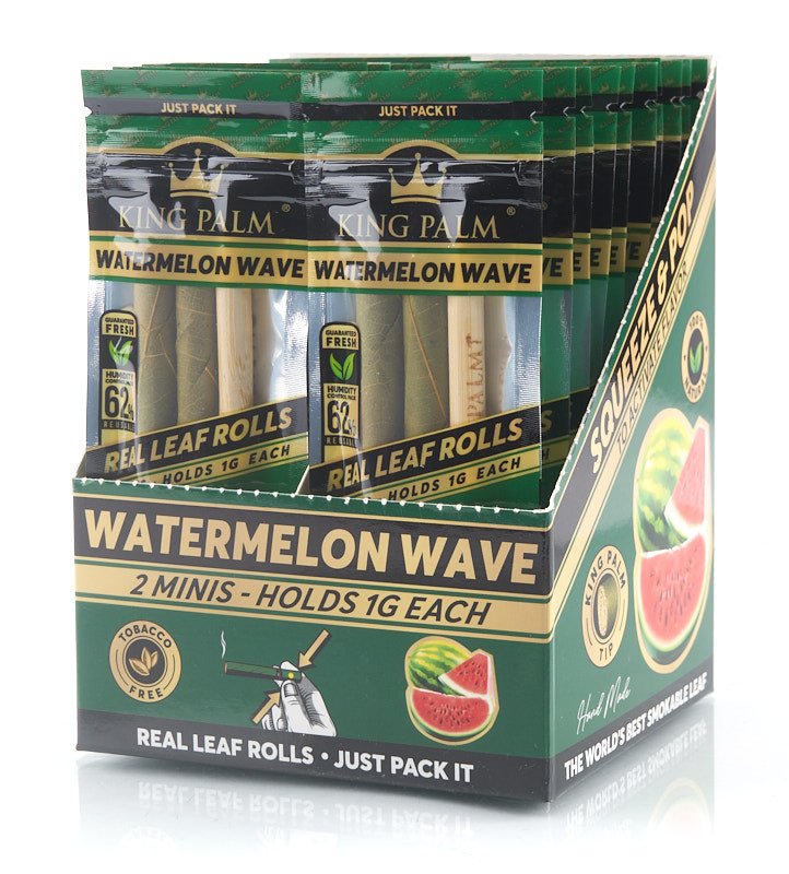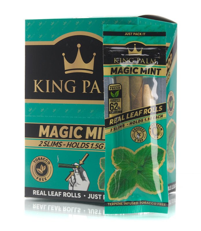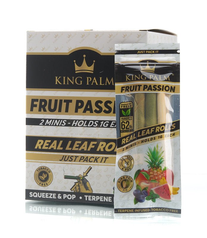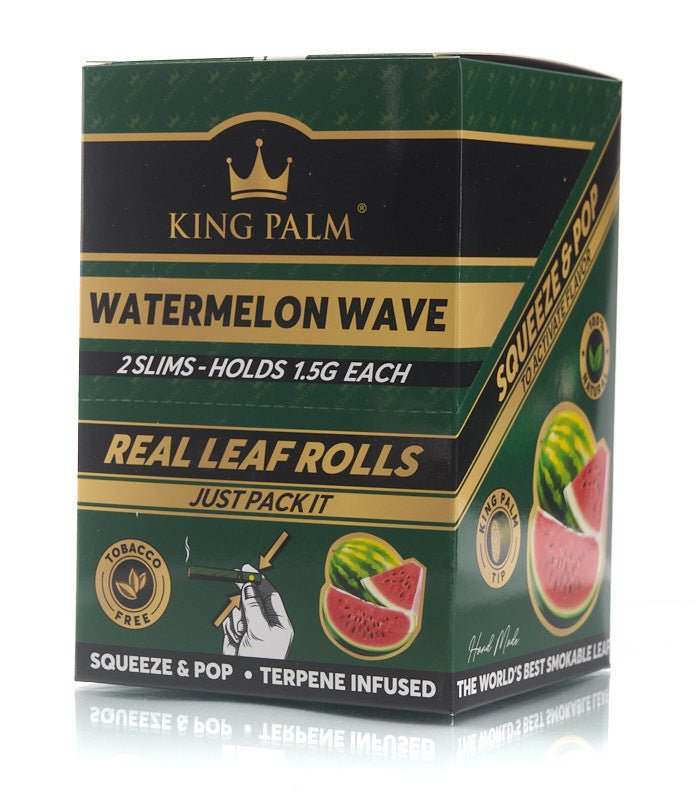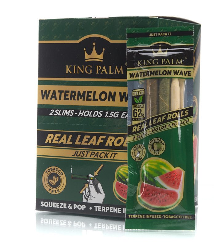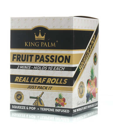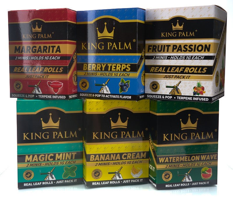 Have you ever wanted to raise your paper game to the next level with the best natural wraps? Give the King Palm Natural Flavor Leaf Rolls a shot! The definitely don't disappoint. These King Palm's are individually handmade from natural Cordia leaves from organic farms in Southeast Asia. These rolls will ensure that even, slow burn is in your smoking forecast! What makes these King Palms so special is their pre-installed squeezable filter tips that are packed full of flavor. All you have to do is pack up, seal up, light up, and snap to activate the potent, natural flavors of the King Palm Natural Flavor Leaf Rolls. No more worrying about whether or not you'll actually taste the flavor! These wraps have got you covered. Choose between 6 scrumptious flavors to get your wrap game on the next level!
