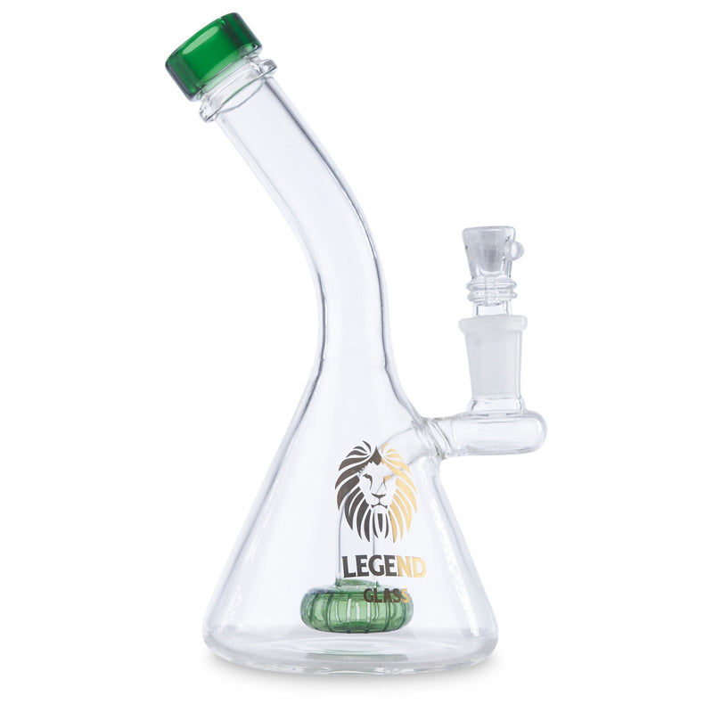 With over 20 unique borosilicate glass designs, Legend Glass is truly legendary. This Legend Tall Banger Hanger will bring you great flavor and smooth hits featuring a showerhead perc at the bottom of the base. This banger hanger is made with a unique bent neck design allowing you to take massive rip without the worrying about splashback. The Legend Tall Banger Hanger is made with a 14mm joint sitting at a 90 degree angle. Get it today at Cloud 9 Smoke Co.