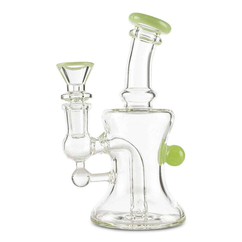 Get a quality dab rig for an amazing value with the Marble Banger Hanger. This glass dab rig is highly affordable featuring stylish color accents. The color marble featured on this piece adds sophistication while giving you extra grip for a more comfortable hold. The bent neck design on the mouth piece keeps water out of your mouth while you inhale. This water pipe includes a matching 14mm martini bowl, so you can enjoy both concentrates and dry herb all in one piece. Don’t miss out out on the fantastic deal with the Marble Banger Hanger. Available in Multiple Colors.