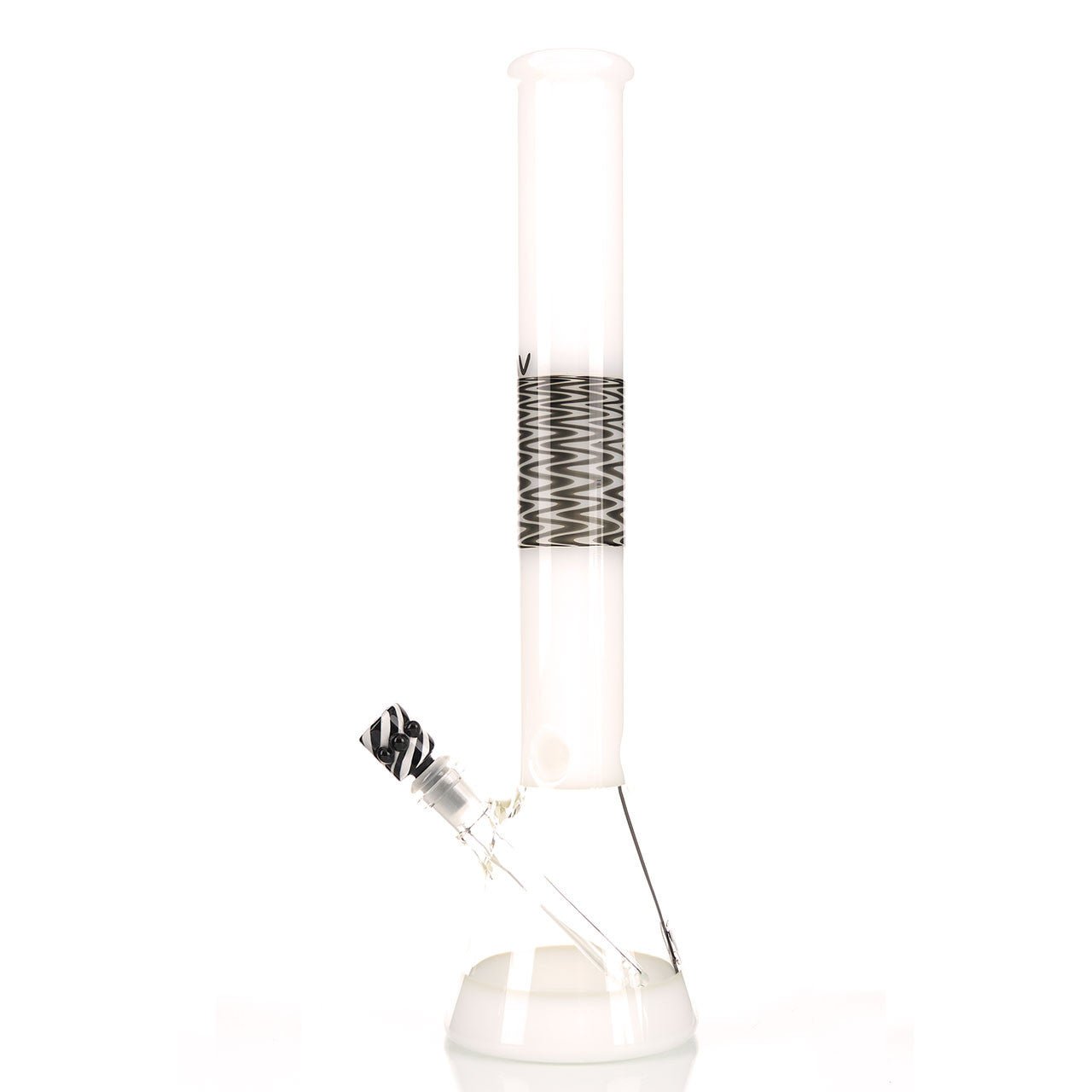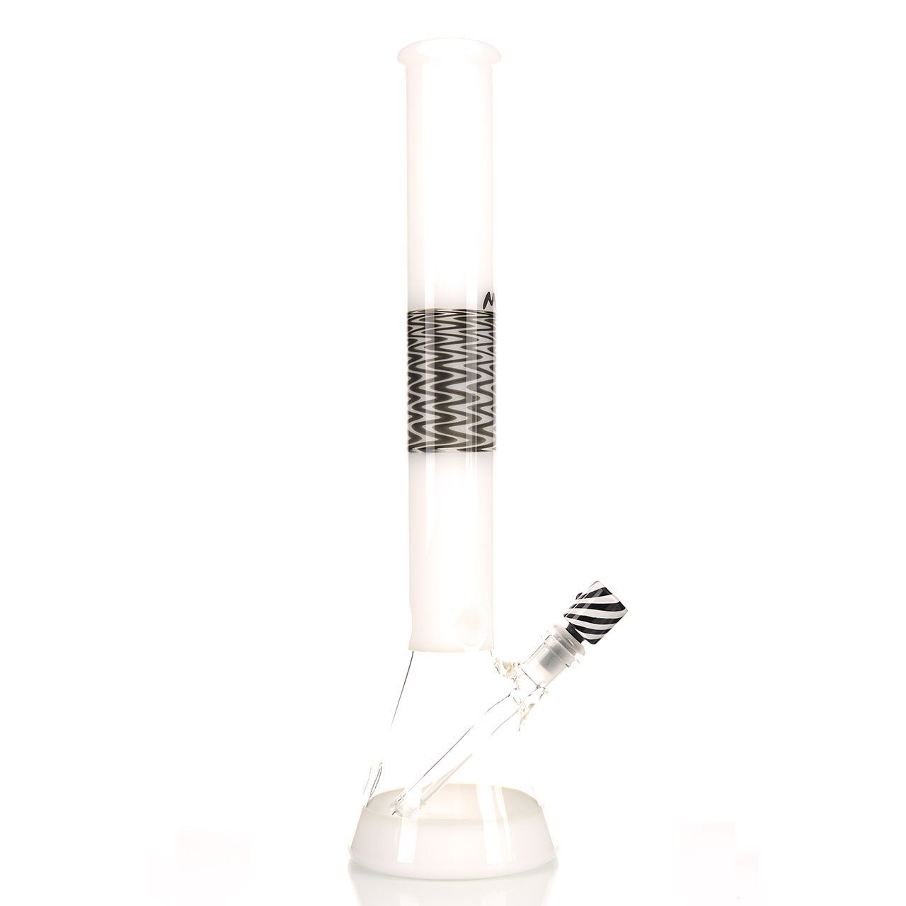 Add some far-out flair to your next sesh with a striking water pipe that will delight you with smooth, filtered hits—the MAV 18" Wig Wag Reversal Beaker pairs superior smoke filtration with an exquisite psychedelic design. Whether you're smoking solo or with a group of close pals, this durable water pipe provides you with smooth and cool hits with the triple-pinch ice catcher that suspends the ice precisely above the water chamber. Designed with a classic beaker shape, the MAV 18" Wig Wag Reversal Beaker is crafted with heavy-gauge borosilicate glass and features a mondo reversal section in the neck's center perfectly accents the white, creamy full-color glass at the base and sleeve. Matching stripes on the included flower bowl is just a cherry on the cake of an already gorgeous pipe. This highly-functional water pipe will be sure to please and just may become your daily driver, whether you're a beginner or a pro.
