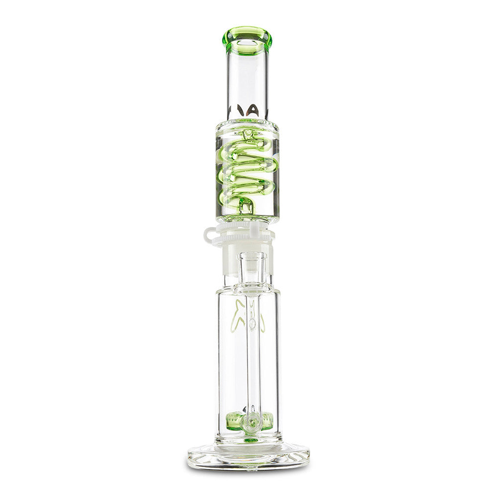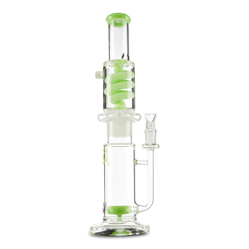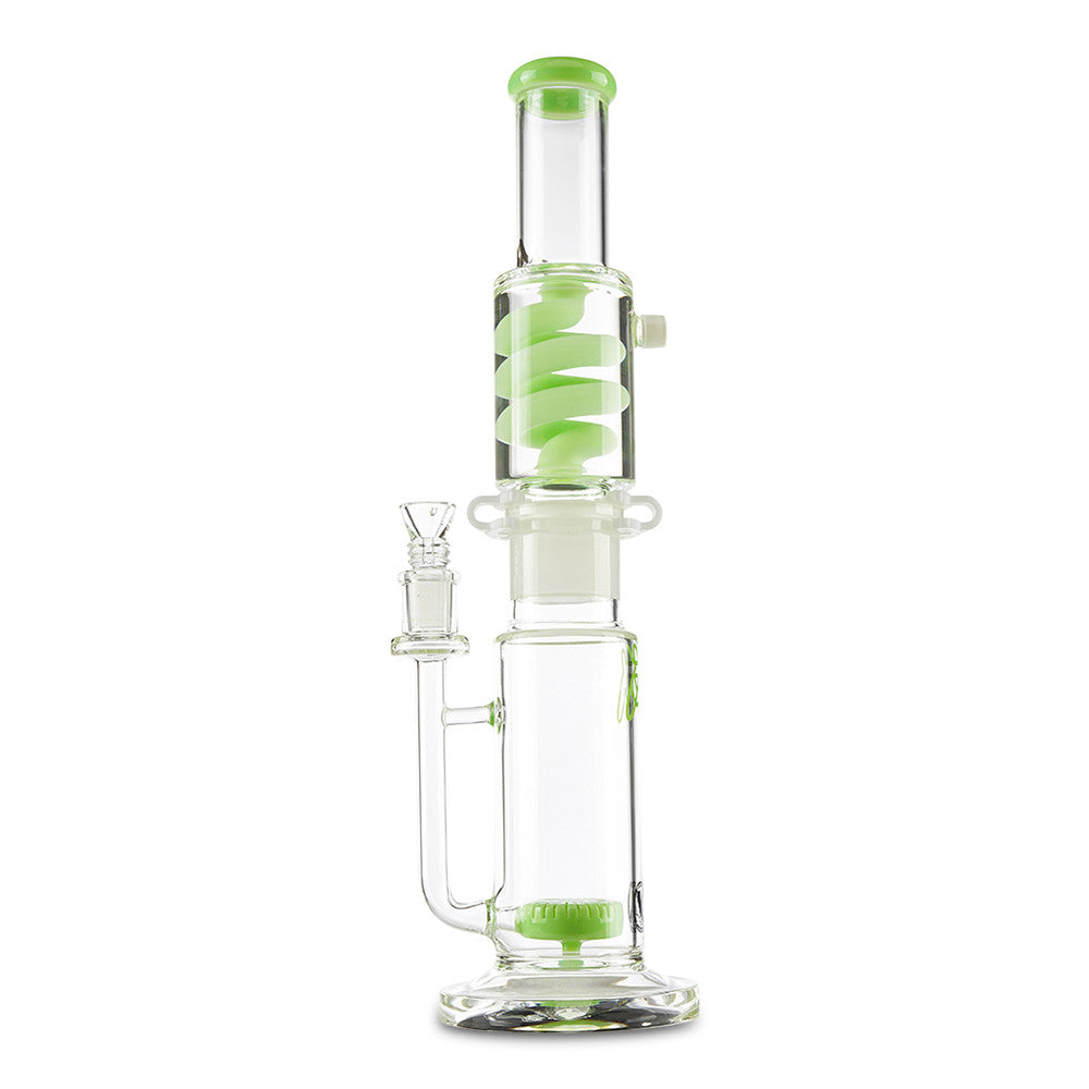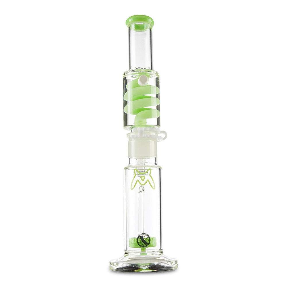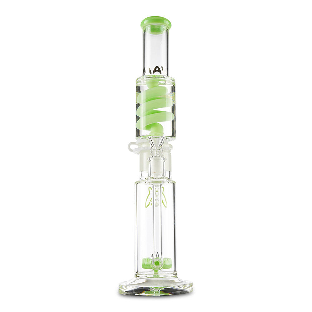 Keep every hit as cold as ice with the Mav Glass Detachable Freeze Coil Water Pipe. This High-end Glass water pipe, made by Maverick Glass, features a slick detachable glycerin freeze coil. The glycerin inside the coil has a high melting point and gel-like consistency upon freezing making it an ideal alternative to ice, since it will stay in place and remain frozen for much longer than ice. The coil is detachable so you can continuously put it in the freezer before use and always enjoy a ice-cold smoking experience. The inline percolator featured on the base of the water pipe provides you with added diffusion and filtration providing you with clean, smooth hits. Available in multiple color options.