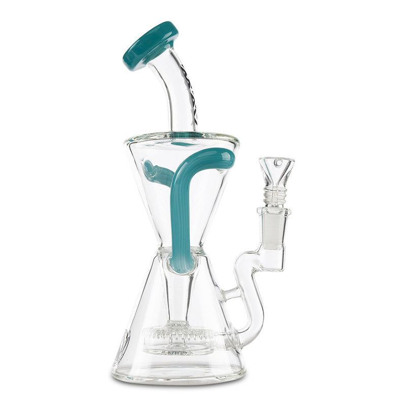 Mav Glass Slitted Puck Recycler - Teal is backordered and will ship as soon as it is back in stock.