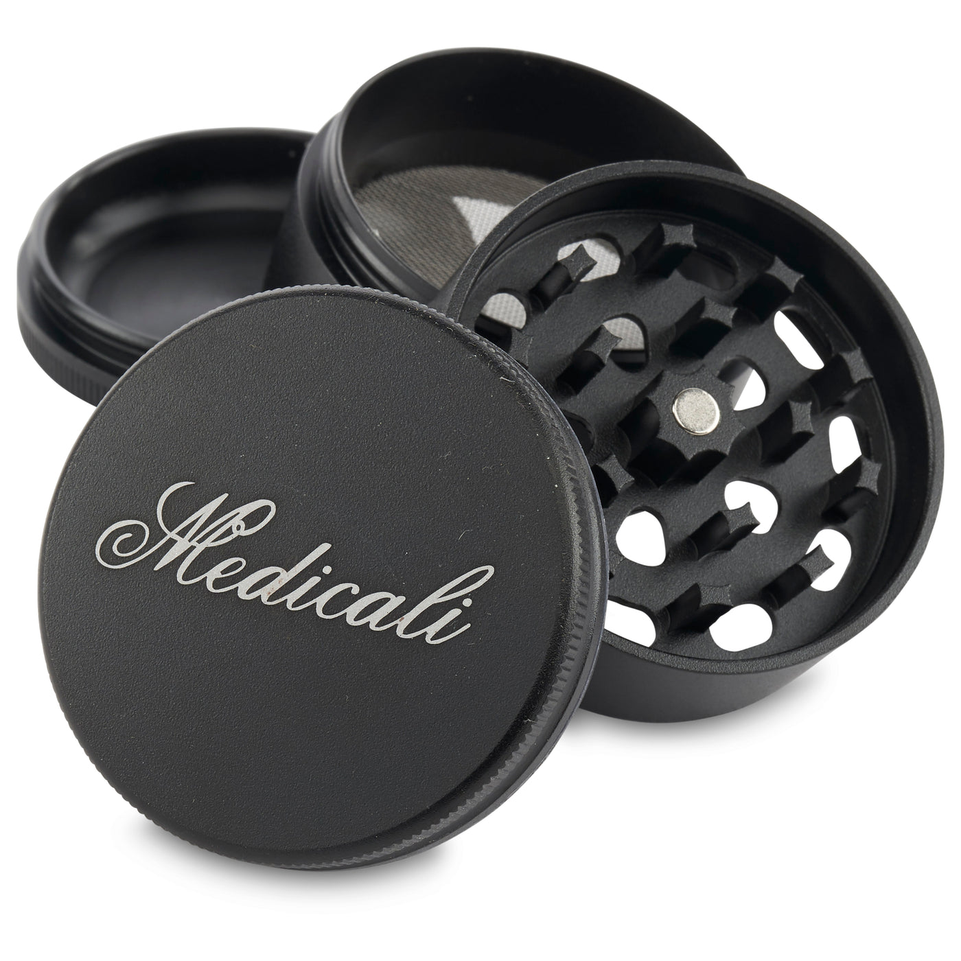 Get a fantastic grind every time with the Medicali Grinder. This medium grinder is designed with medical-grade anodized aluminum with a smooth matte finish. The anodized aluminum is ultrasonically cleansed giving you a shiny, sleek, and durable grinder. The tooth design on this grinder is designed to prevent the metal from shredding keeping unwanted material out of your dry herb. Additionally, the Medicali Grinder features a top quality rare earth magnet in the lid that will ensure your grinder stays together. This grinder comes with four chambers including a pollen catcher. With the revolutionary design and affordability, the Medicali Grinder is a fantastic choice when looking for a reliable grinder.