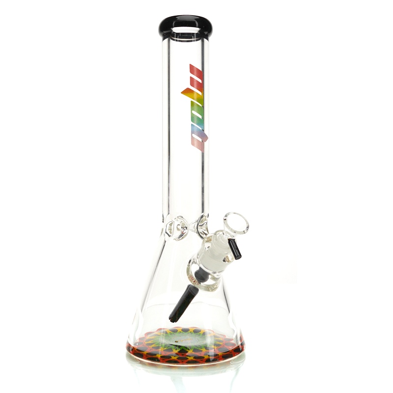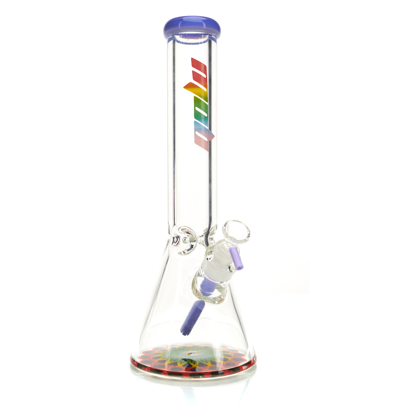 The MOB 14in Rainbow Beaker is a classic build that echoes many of the features as the glow in the dark beaker mentioned above. This water pipe is a great starter pipe or an old reliable pipe for the living room table. This is due to its simple functionality high level of effectiveness when it comes to roasting your favorite product. This beaker water pipe features 9 mil thickness so even if you drop this bad boy on a soft surface it’s most likely going to be alright. The flare lip on the straight pipe portion is a great grip point as well as a stylish feat that allows your water pipe to stand out amongst the others in both performance and appearance.