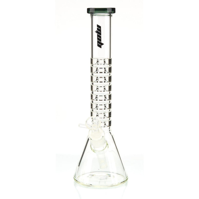 MOB Glass has really come in clutch for all tokers with the MOB Crazy 8 Beaker! The MOB Crazy 8 Beaker is all about unique design and impressive functionality. This beaker base water pipe features immaculate architecture crafted from borosilicate glass, making this an insanely sturdy and beautiful water pipe to have as part of your collection. The Crazy 8 Beaker comes locked-and-loaded with a removable diffused downstem to work alongside the pipe’s water reservoir to provide smooth tokes, even if you choose to wow the homies with a lump sum snap! The Crazy 8’s straight neck features 8 lipped structures that serve as the most solid splash guard you could ever ask for, and also gives you lee-way to top the neck off with ice. It’s safe to say this water pipe is all about giving you clean, smooth, icy-fresh hits! The MOB Crazy 8 Beaker features colored accents on its MOB branded logo and rimmed mouthpiece in your choice of 2 wicked colors, making this a piece ready to compliment your aesthetic preferences. The MOB Crazy 8 Beaker has come to deliver, and it’s time to make it yours!