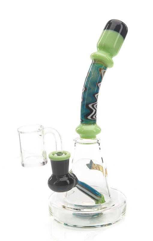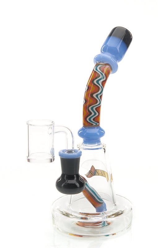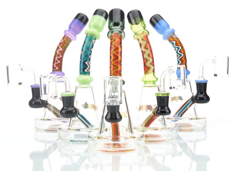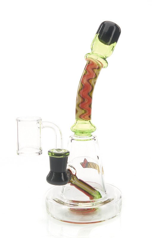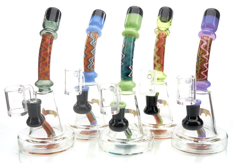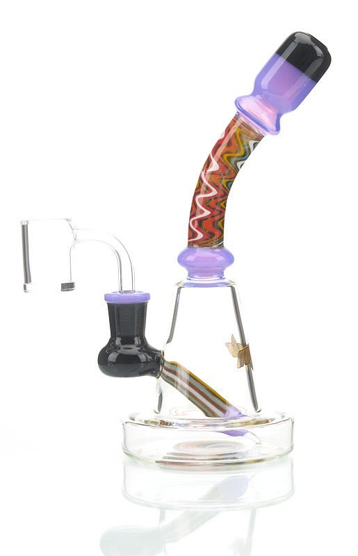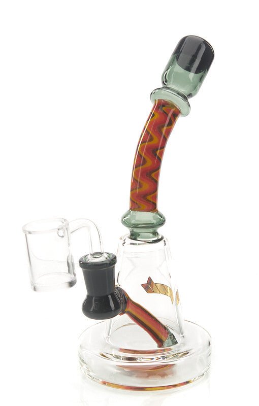 The MOB Elite Cone is the rig you’ve been waiting a lifetime for! Making the most out of a dabbing experience is always #1, and with this rig, you’ll always remain top-tier. The MOB Elite Cone is a compact rig made of borosilicate glass so you can relish in high quality and durability while whipping up a fat glob of your favorite concentrate! The Elite Cone comes furnished with a 90-degree joint paired with a fixed triple diffy percolator. The triple diffy percolator comes in handy with this rig’s hollow foot base to ensure that all rips and tokes are smooth, clean, and most importantly, effortless! With the Elite Cone, you can enjoy seshes atop any table-top surface with its bent neck and splash guard features, which will ensure that all seshes are done with leisure and no unwanted water will make its way to the dome. You can find the MOB Elite Cone outfitted with wig-wag designs on its downstem, base, and neck paired with colored accents on the joint piece, splash guard, and neck. To make this all the better, you can choose between 5 color choices to make the MOB Elite Cone true to your glass aesthetic!