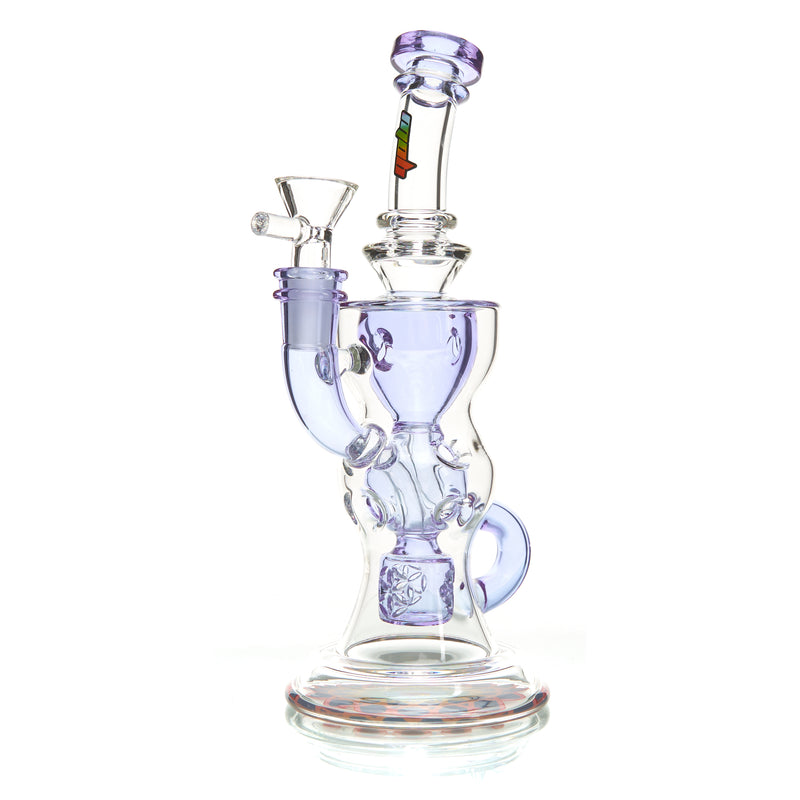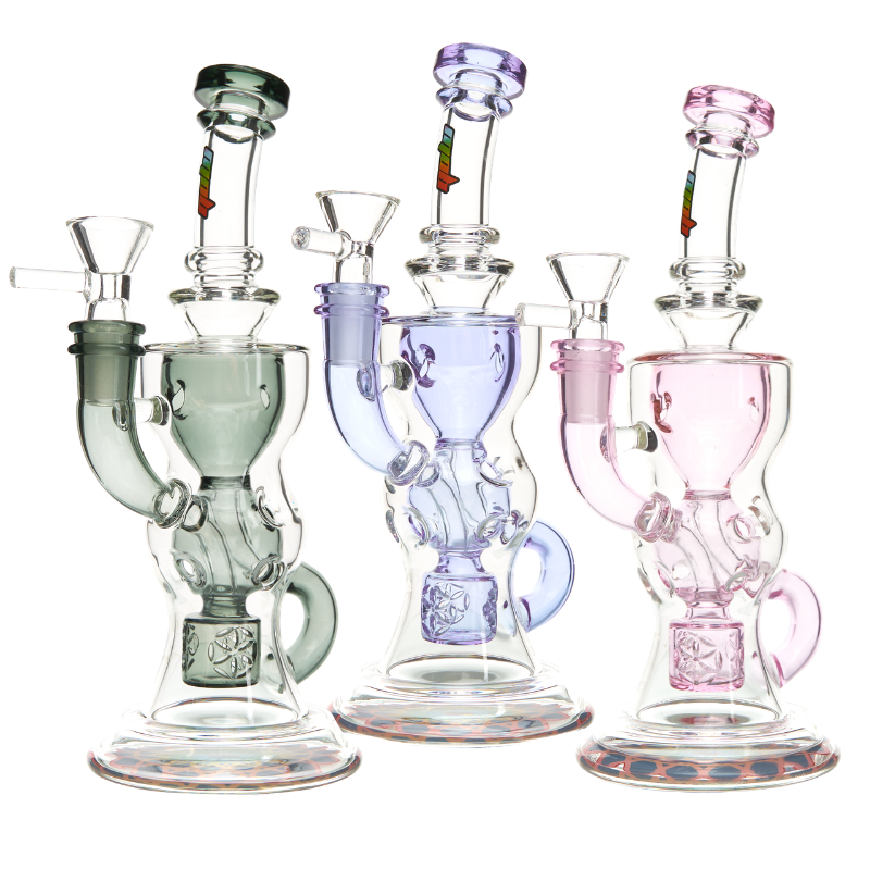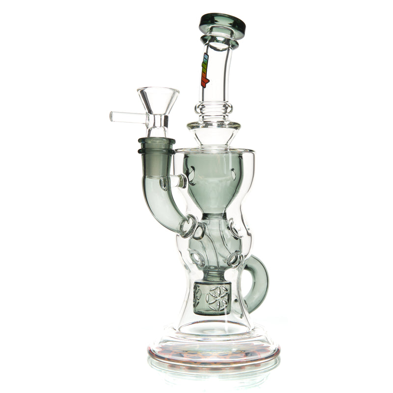 The MOB Glass FTK Dab Rig is the perfect recycler rig any avid dabber needs for their set up! Designed for the kill, or maybe for the rip, the FTK Dab Rig is ready to pack a punch to the dome. The FTK Dab Rig features sleek tubing and glossy architecture crafted from borosilicate glass. Its sturdy body and wide rimmed base gives you the perfect opportunity to take leisurely dabs from any tabletop surface. The FTK Dab Rig’s fixed downstem is equipped with a showerhead perc and vortex recycler to make sure all dabs are the smoothest, and best dabs, every time. Accompanied with a splash guard, this rig’s bent neck and flared mouthpiece will rid of any unwanted elements in your dabbing routine and will optimize your suction, so you can always stay locked and loaded with the FTK rig! The FTK Dab Rig is outfitted with colored accents on its 90-degree joint piece, percolator and recycler, MOB branded logo, and flared mouthpiece in your choice of two jaw-dropping colors. The MOB FTK Dab Rig is locked and loaded, ready to become your side kick for all dabbing extravaganzas!