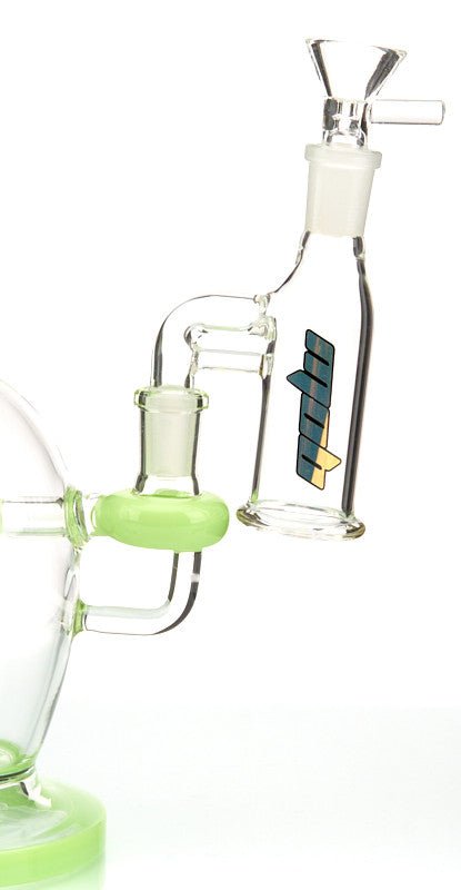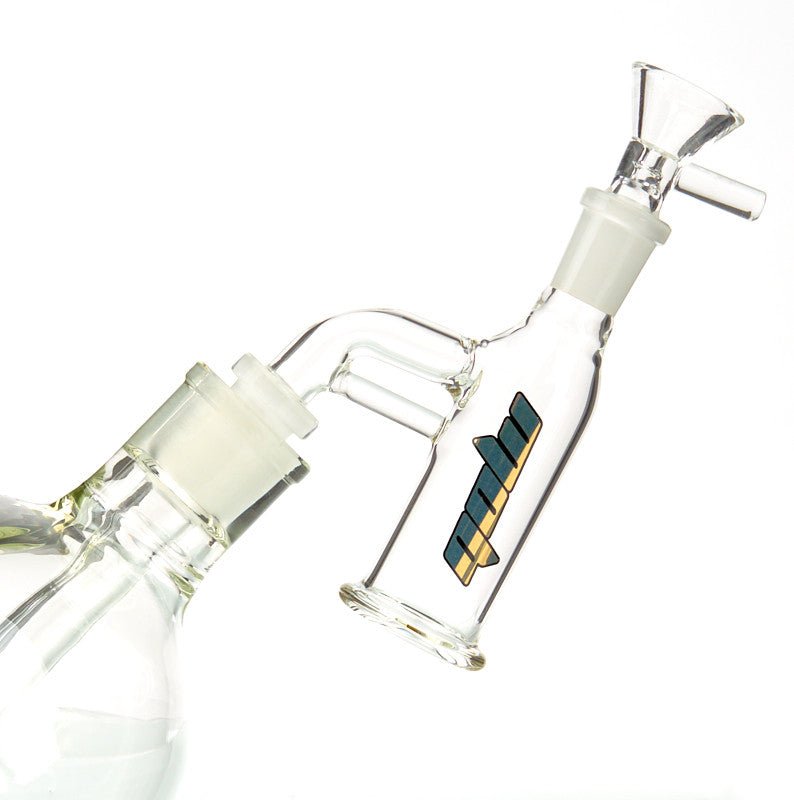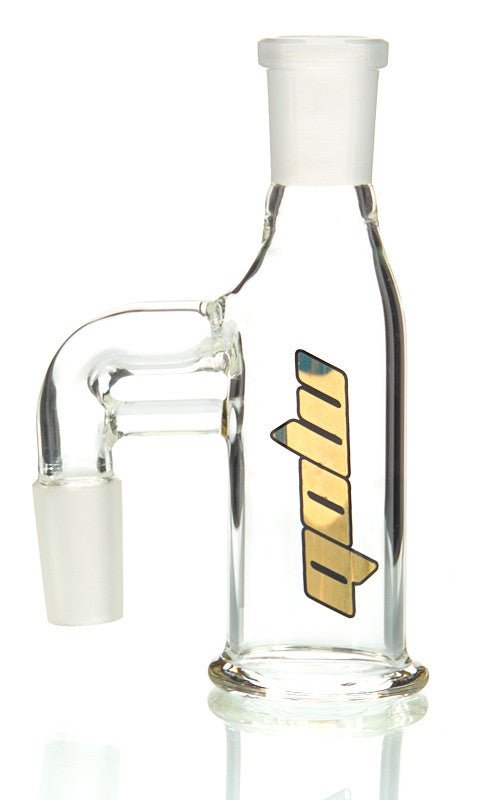 This convenient MOB Glass Dry Ash Catcher helps trap burnt ash before it enters your piece, which means a cleaner water pipe and less maintenance for you. This non-diffusing dry ash catcher is a must-have water pipe upgrade attachment that comes in 45-degree or 90-degree angle with a 14mm male insert. Designed with no percs means zero drag or resistance when using your piece. When your done, simply empy your ash catcher of the burnt ash and rinse with water. Viola! It is ready for your next sesh. The MOB Glass Dry Ash Catcher is crafted from premium high-grade borosilicate glass and has a grounded joint for a a tighter seal.