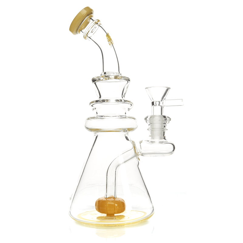 Take your seat, fasten your seatbelt, place your tray table in the upright position, and get ready for the flight of your life with this MOB Glass Hollow Base Triangle Dab Rig. This high-performance dab rig has flawless function and great design that lets you enjoy concentrates on a whole new level. Designed for all dab enthusiasts, the MOB Glass Hollow Triangle, made from premium, thick borosilicate glass, is designed to last you a lifetime. The unique hollow base provides space for adding more water to create smoke cooling effect and recycling function. The slightly bent neck lets you smoke in a more relaxed, laid back position. The roomy foundation provides a stable foot that keeps your rig from tipping and provides plenty of space for smoke to swirl around and cool before going through the slightly bend mouthpiece. The MOB Glass Hollow Triangle Dab Rig has a fixed downstem with a 14 mm female joint and arrives with all the parts needed to enjoy straight out of the box. Choose from a variety of colored lip options. The MOB Glass Hollow Triangle Dab Rig is the one stylish piece you'll be tempted to show off to your friends.