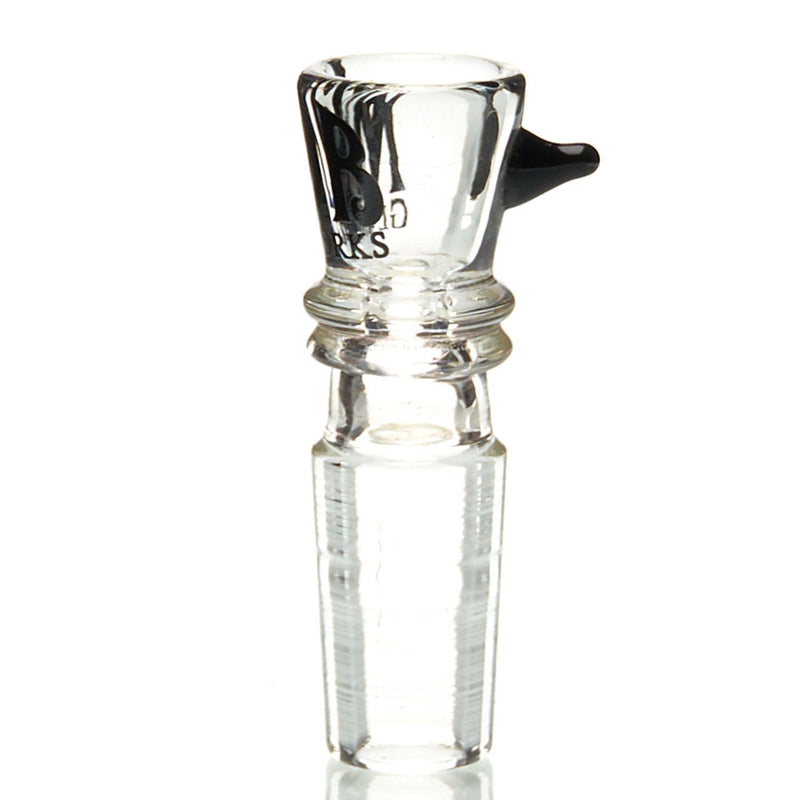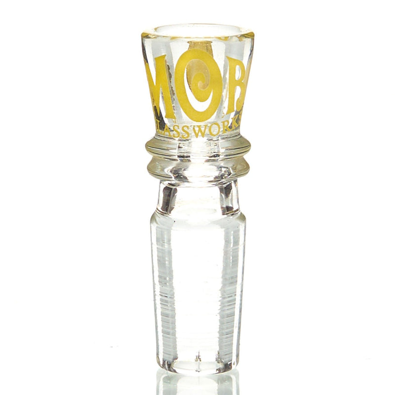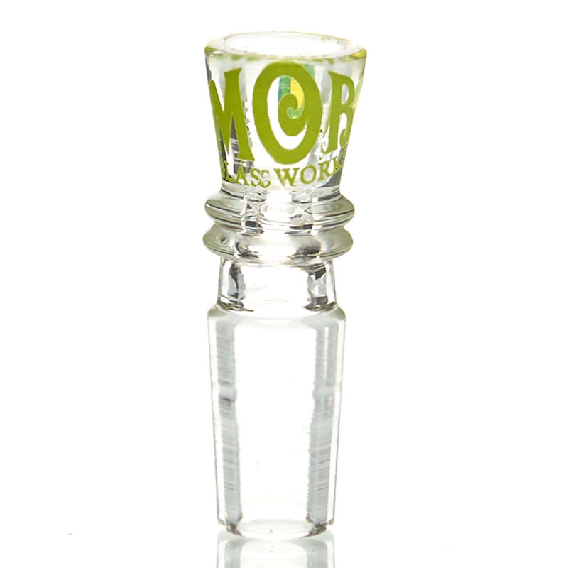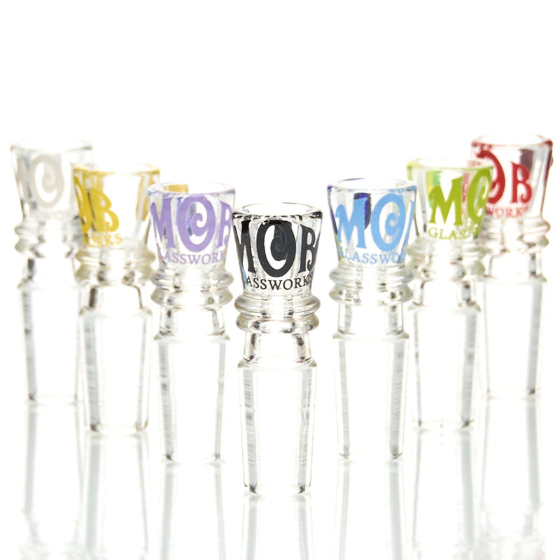 Turn your ordinary water pipe into an extraordinary feature with the MOB Glass Microdot Slide. It may be mini, but it sure is mighty. This unique bowl with a mini dot and colored accent will make your water pipe or bubble look super cool. The 14mm groundless joint makes sure you have an excellent tight fit. The little nub on the side makes this bowl easy to handle and is an extra layer that helps keep your fingers cool. The MOB Glassworks logo comes in a variety of eye-popping colors. At prices these low, you might as well collect a few!