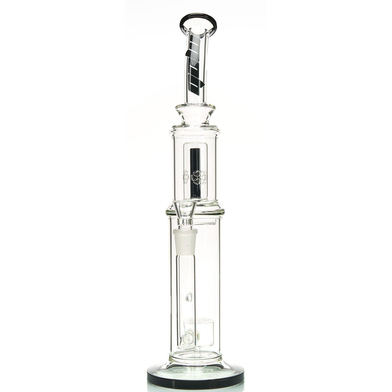 With a design that stands the test of time, the MOB Glass Oracle Water Pipe provides exceptional form, function and airflow. This straight tube water pipe is 16-inches tall and features two innovative flower of life perc inside and double chamber filtration. Eliminate hot, dry rips from your life with a perfectly percolating work of art. The top-feeding seed of life perc at the base does not disrupt the microbubbles, while the top flower perc serves as an additional smoke filtering for super smooth, clean hits. The unique glasswork design and colored accents give this already stunning piece a stylish flair. The flared base is 4-inches in diameter, providing you with additional sturdiness and stability on any surface. The curved neck and flared color accented lip offers more comfort while smoking. The 18mm female joint comes with an 18mm male slide with a handle. The MOB Glass Oracle Water Pipe has all the elements that make any straight tube great while adding a fun pop of color to any sesh.