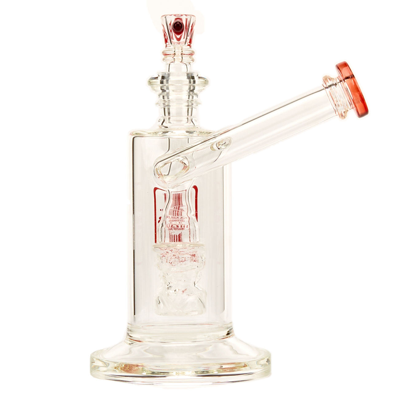 Transport yourself with a smoke sesh using the MOB Glass Sidecar Bubbler. This affordable glass water pipe provides you with smooth, flavorful hits you've come to expect from Cloud 9 Smoke Co. The most interesting of designs, the MOB Glass Sidecar Bubbler, gets its name from a motorcycle's sidecar. The flared mouthpiece on this water pipe creates a natural splashguard preventing pull through as you smoke. Plus, the 45-degree angle of the neck makes your sesh fell more comfortable. And boosting your experience even more is the innovation snowman percolator, all designed to give you outstanding filtration and super-smooth hits. Our fans love this upright bubbler and use it as their daily driver because of its thick glass construction and stable base that prevents tip-overs. The mouthpiece is flat and is the perfect distance from your bowl. The fixed downstem extends into the chamber and tunnels your smoke through the water and micro-slitted percolator.