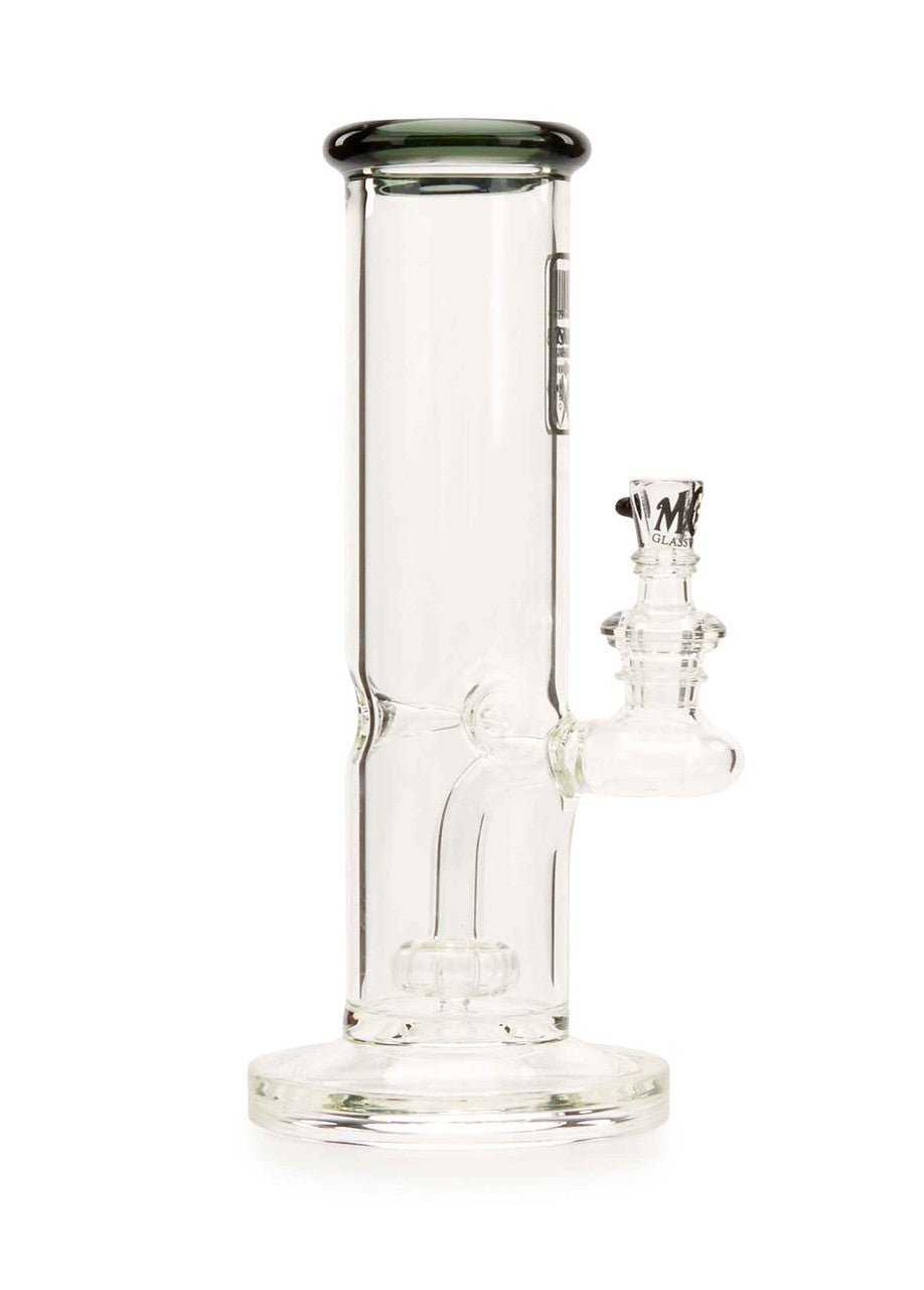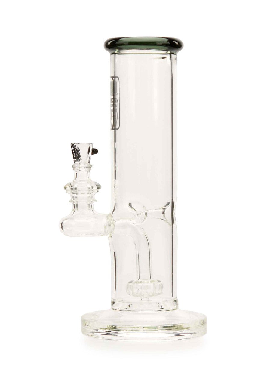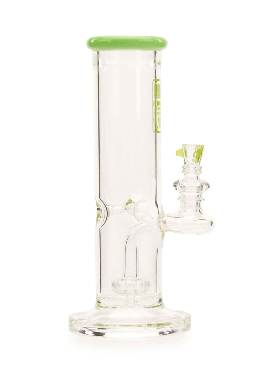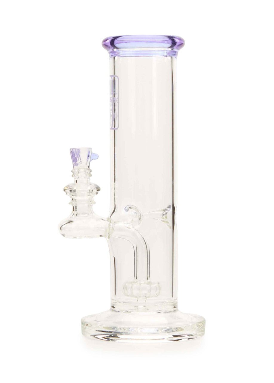 The new MOB Glass Straight Tube Hanger water pipe features a thick glass straight tube, fused stemline, ice pinch, and showerhead percolator to separate your smoke for maximum diffusion and provides super-smooth rips. The straightforward design with fixed downstem prevent wear and damage and keeps water from splashing out. The premium borosilicate glass adds extra durability, while the colored lip and MOB micro dot slide bowl creates a distinctive aesthetic. The 90-degree, 14mm joint lets you use your favorite banger and comes with a colored dot slide with MOB logo design. The MOB Glass Straight Tube Hanger is available in several eye-catching colors and is the perfect statement piece for any water pipe collection.