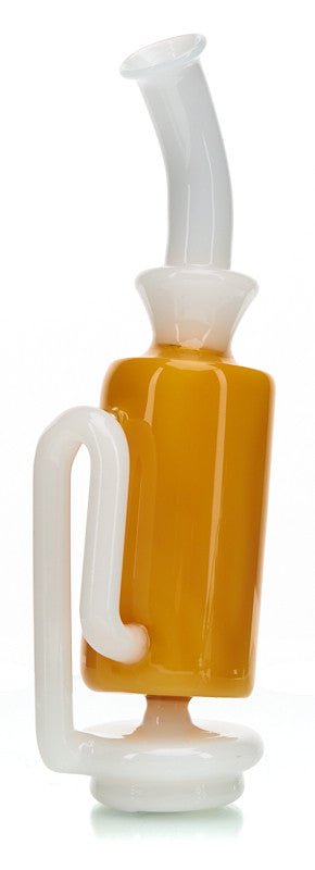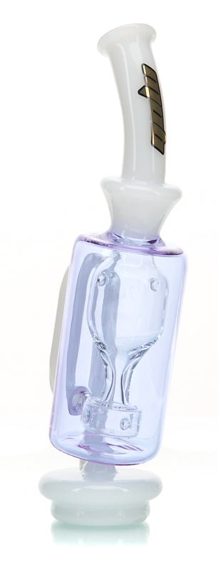 Who better than MOB to create an apparatus for using water to diffuse vapor from the Puff Co? The MOB Torus attachment is compatible with any version of the Puff co. Peak and works incredibly to make every dab smoother and cooler before reaching into the depths of your lungs. This pice is made from borosilicate glass so it is durable, but we suggest using this on your Puff Co. from a stationary position instead of trying to take this on the road. The inner diffuser on this product features multiple holes as well as an hour glass shape in order to force your vapor to both percolate and diffuse the largest surface area possible. For those of you that feel the puff cans till be too harsh or would like to minimize the carcinogens present, this is the perfect device for you!