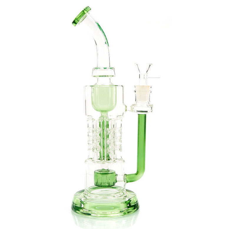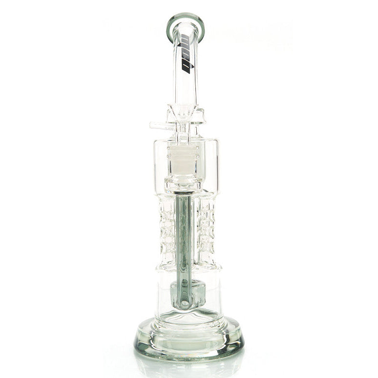 The MOB Internal Swiss Pillar is a water pipe made to turn heads and strike glances! This outstanding water pipe features intricate tubing and design made from borosilicate glass, making it a strong and sturdy piece for the long run. The Internal Swiss Pillar comes equipped with a Dewar’s joint paired with a fixed showerhead percolator to keep all hits, rips, tokes, and more sensible and smooth! The Internal Swiss Pillar’s showerhead percolator works alongside its 6 Swiss pillars and internal recycler to allow for additional filtration, leaving you a happy toker with every sesh. This water pipe takes the cake for convenience and functionality not only with its percolation system, but with its bent neck and splash guard features as well! With the Internal Swiss Pillar, you can conveniently toke from this piece with the assurance that what you put into the piece is what you’ll receive. AKA - no icky water interference! You can find the MOB Internal Swiss Pillar outfitted with colored accents on its elevated base, Dewar’s joint, percolator, recycler, and mouthpiece in your choice of 2 sick colors. With the MOB Internal Swiss Pillar, the sky’s the limit for your smoking experiences!