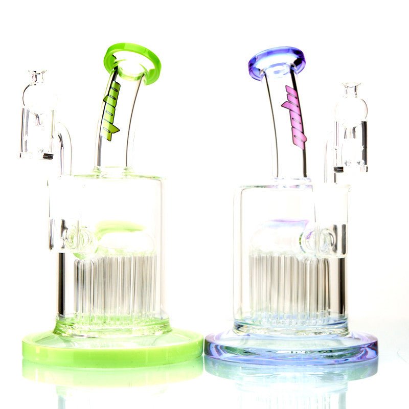 The Mac 20 Dab Rig by Mob Glass Works is a dab rig that features 20 tree percolators and vibrant colors. This is a classic commentary on the tree perc style of dab rigs, though they can still be used for flower. The Mac 20 Dab Rig is an excellent piece that allows a user to pay the price for high end glass, but have the experience of a heady water pipe itself. This waterpipe is a solid experience for amateur smokers and professionals alike.