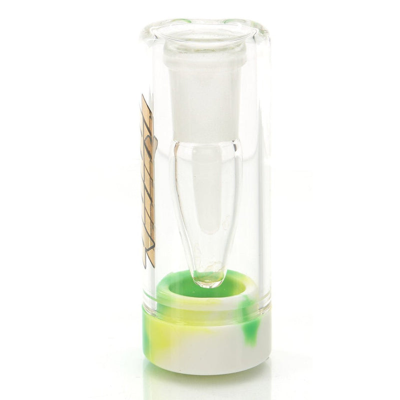 All tokers know the fun experiences that come from taking rips out of their favorite water pipe, but they also know the heartbreak that follows after noticing precious, unused concentrate or bud that’s made its way into the water reservoir. To save all of us from heartbreak, the MOB Reclaim Ash Catcher is here to make its debut! The MOB Reclaim Ash Catcher is the perfect attachment to ensure fallen extract or dry herb stays contained, saved, and ready for the next bowl. The Reclaim Ash Catcher is made from borosilicate glass, which is the perfect armor when it comes to toking. This ash catcher features a funneled attachment to its slide to allow for fallen herb or extract to travel safely into its attached silicone container. Once you’ve finished a sesh, you can look inside the Reclaim Ash Catcher’s silicone container to retrieve any fallen product to use for the next extravaganza! You do not want to miss out on all the saving and fun times to be had with the MOB Reclaim Ash Catcher.