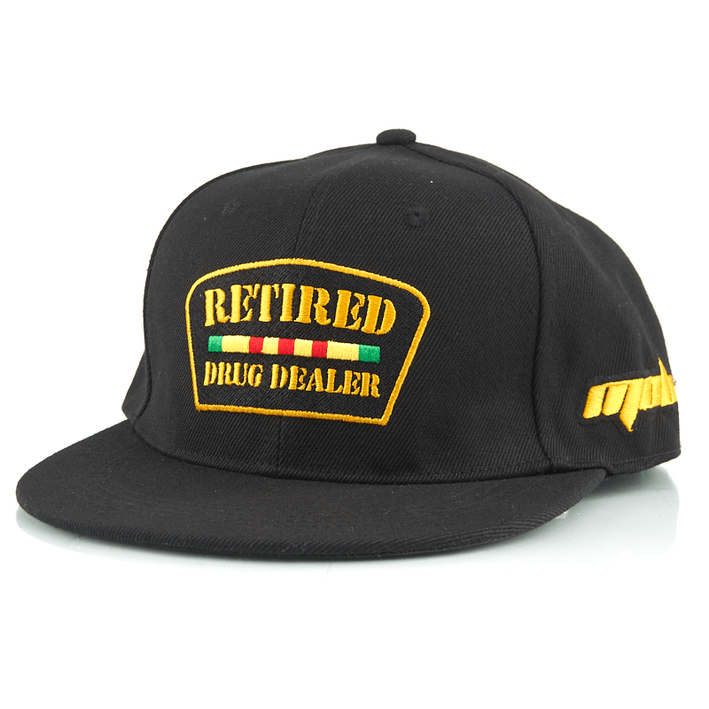 The first official MOB merch is now available! The MOB Retired Drug Dealer Hat lets everyone know just how cool you are by announcing your former occupation. All of the lettering is authentic embroidery on high quality fabric. This hat features a snap back design on the back that allows you to adjust the tightness on your head so it’s great for anyone and everyone. The stitching and embroidery showcases an array of rich colors that grab people’s attention and welcome them to read your head.